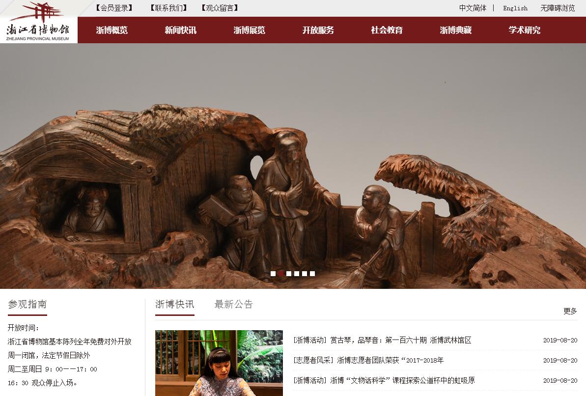 浙江省博物館始建于1929年,初名“浙江省西湖博物館”,經(jīng)過九十年的發(fā)展,她已發(fā)展成為浙江省內(nèi)規(guī)模最大的綜合性人文科學(xué)博物館,形成了包括孤山館區(qū)、武林館區(qū)、名人舊居、文物保護科研基地等在內(nèi)的多層次、廣范圍的陳列展示與服務(wù)社會的新格局。浙江省博物館館藏文物及標(biāo)本十萬余件,文物品類豐富,年代序列完整。其中,河姆渡文化遺物,良渚文化玉器,越文化遺存,越窯、龍泉窯青瓷,五代兩宋佛教文物,漢代會稽鏡,宋代湖州鏡,南宋金銀貨幣,歷代書畫和金石拓本,歷代漆器等,都是極具地域特色及學(xué)術(shù)價值的珍貴歷史文物。目前,浙江省博物館設(shè)有“越地長歌——浙江歷史文化陳列”、“錢江潮——浙江現(xiàn)代革命歷史陳列”兩個基本陳列和“昆山片玉——中國古代陶瓷陳列”、“畫之大者——黃賓虹藝術(shù)陳列”、“重華綺芳——宋元明清漆器藝術(shù)陳列”、“非凡的心聲——世界非物質(zhì)文化遺產(chǎn)中的中國古琴”、“意匠生輝——浙江民間造型藝術(shù)”、“十里紅妝——寧紹婚俗中的紅妝家具”、“文瀾遺澤——文瀾閣與《四庫全書》”等專題陳列。此外,浙江省博物館還每年向社會推出約三十個題材多樣、內(nèi)容豐富的臨時展覽,多個展覽獲評“全國博物館十大陳列展覽精品獎”。浙江省博物館始終堅持以學(xué)術(shù)研究立館,通過對藏品、歷史文化以及博物館學(xué)的研究,服務(wù)于博物館的文物收藏與保護、陳列展示,從而更好地發(fā)揮了博物館的社會教育、文明傳承以及文化傳播功能。近年來,浙江省博物館各項事業(yè)取得了長足的發(fā)展,得到了社會各界的充分肯定。2006年浙江省博物館被文化部評為全國“公共文化設(shè)施管理先進單位”, 2008年被國家文物局評為“國家一級博物館”,2009年被中共中央宣傳部評為“全國愛國主義教育示范基地”,同年又被國家文物局、財政部評為“中央地方共建國家級博物館”。2012年被中宣部、文化部、國家廣電總局與新聞出版總署聯(lián)合授予 “全國文化體制改革工作先進單位”稱號,在2014-2016年度國家一級博物館運行評估中獲評“優(yōu)秀”。浙江省博物館工作職責(zé):以學(xué)術(shù)研究立館,通過對藏品、歷史文化以及博物館學(xué)的研究,服務(wù)于博物館的文物收藏與保護、陳列展示,從而更好地發(fā)揮了博物館的社會教育、文明傳承以及文化傳播功能。