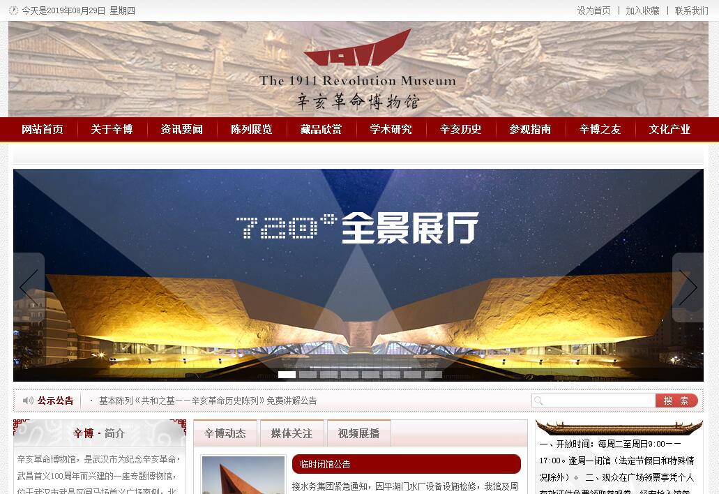 辛亥革命博物館,是武漢市為紀念辛亥革命?武昌首義100周年而興建的一座專題博物館,位于武漢市武昌區(qū)閱馬場首義廣場南側,北臨彭劉楊路,南抵張之洞路,東鄰楚善街,西靠體育街,是首義文化區(qū)的核心建筑,與鄂軍都督府(紅樓)、孫中山銅像、拜將臺、烈士祠牌坊等同處一條軸線。辛亥革命博物館的外形設計獨特,融合了中國傳統(tǒng)建筑元素和現代建筑特色,高臺大屋頂的架構,彰顯中國建筑“雙坡屋頂”和飛檐翹角的特質;幾何形外觀和“楚國紅”色調,寓意敢為人先的首義精神,俯瞰呈V字造型,寓意勝利和武漢的騰飛。辛亥革命博物館總建筑面積22142㎡,分為地下一層和地上三層,設有1個序廳、5個基本陳列展廳和1個多功能展廳,集陳列展示、文物收藏、宣傳教育與科學研究等功能于一體,是現有辛亥革命專題博物館中展覽規(guī)模最大、陳列科技含量最高、復原場景最多、參觀導覽系統(tǒng)最全的博物館,配套建設有辦公服務區(qū)、藏品庫房、設備庫房、文物鑒賞室、學術報告廳、地下車庫等。辛亥革命博物館基本陳列《共和之基——辛亥革命歷史陳列》分為晚清中國、革命原起、武昌首義、創(chuàng)建共和、辛亥百年五個部分,展示了辛亥革命歷史文物428件(套),歷史照片694張,以及重大歷史事件復原場景27處,藝術品12處,多媒體20處。辛亥革命博物館于2009年8月動工興建,2011年9月落成,2011年10月8日舉行《共和之基——辛亥革命歷史陳列》開展儀式,10月15日免費對社會開放。開館以來,已接待眾多中央、省市領導及海內外各方來賓。