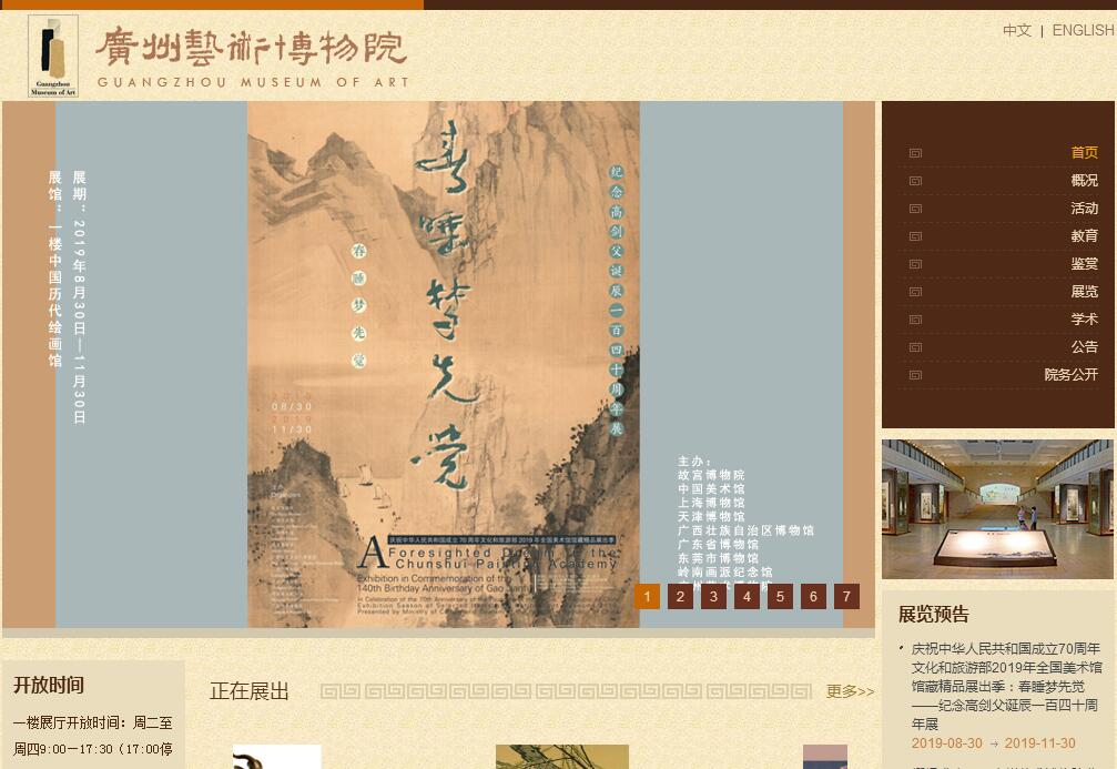 廣州藝術(shù)博物院坐落在廣州市北面的白云山腳,麓湖之畔,占地面積20300平方米,建筑面積40300平方米。本院前身是有著四十多年歷史的廣州美術(shù)館,1995年,廣州市政府重新選址立項興建廣州藝術(shù)博物院,2000年秋完成第一期工程,并于2000年9月23日正式對外開放。2003年完成第二期工程。本院是華南地區(qū)大型的藝術(shù)類博物館,集收藏、研究陳列、展覽、教育、交流和休閑于一體?,F(xiàn)有展館(廳)19個,并設(shè)有多功能報告廳、文物庫房、文物修復(fù)室、藝術(shù)鑒賞室等,專業(yè)功能齊全,設(shè)備配套完善,藝術(shù)氛圍濃厚。2015年,被評為全國重點(diǎn)美術(shù)館。本院的收藏以中國歷代書畫作品為基礎(chǔ),特別是以嶺南地區(qū)的書畫作品為重點(diǎn),兼顧其他門類的歷代藝術(shù)品,藏品類別包括中國畫、書法、油畫、版畫、水彩畫、水粉畫、粉彩畫、漫畫、漆畫、雕塑、唐卡、銅器、陶瓷、木器、剪紙等。藏品年代上起新石器時代,下至當(dāng)代,其中不少為國寶級文物,具有很高的藝術(shù)價值和歷史價值。本院設(shè)立的長期陳列館(區(qū))有:中國歷代繪畫館、嶺南館、高劍父藝術(shù)館、陳樹人藝術(shù)館、賴少其藝術(shù)館、關(guān)山月藝術(shù)館、黎雄才藝術(shù)館、趙少昂藝術(shù)館、楊善深藝術(shù)館、廖冰兄藝術(shù)館、楊之光藝術(shù)館、歐初藝術(shù)博物館、趙泰來收藏館、馬思聰音樂藝術(shù)館、雕塑展區(qū)等;短期陳列館(廳)有:專題陳列館、會展廳、藝術(shù)交流廳、國際藝術(shù)交流展廳等。每年本院圍繞豐富的藏品舉辦各類型專題展覽,配合出版學(xué)術(shù)叢書以及舉辦各種學(xué)術(shù)研討活動。同時,本院十分注重文化藝術(shù)交流活動,不定期引進(jìn)國內(nèi)外文化機(jī)構(gòu)的優(yōu)秀藝術(shù)展覽,同時也不遺余力地向各地推介嶺南本土文化藝術(shù)。本院也關(guān)注中國當(dāng)代美術(shù)以及國際藝術(shù)的發(fā)展動向,不定期舉辦當(dāng)代重要藝術(shù)家以及國內(nèi)、國際藝術(shù)交流展,讓公眾了解當(dāng)代國內(nèi)外藝術(shù)發(fā)展的現(xiàn)狀。