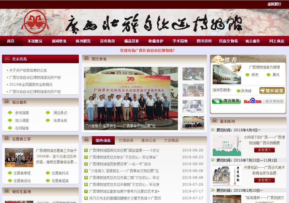 廣西壯族自治區(qū)博物館(以下簡稱廣西博物館)是?。ㄗ灾螀^(qū))級綜合性歷史、藝術類博物館,也是全國首批國家一級博物館。館藏文物(含古籍)7萬多件(套),時間跨度長達80多萬年。廣西博物館地處南寧市政治、文化、商業(yè)中心,占地面積4萬多平方米。陳列大樓之外還建有頗具民族特色的文物苑,是國內(nèi)最早開創(chuàng) “館苑結合”、“動靜相輔”模式的博物館。廣西博物館是展示和傳承八桂歷史文明、弘揚優(yōu)秀傳統(tǒng)文化的藝術殿堂,已構建了基本陳列、特別展覽、合作展覽、輸出展覽和引進展覽交相輝映的陳列展覽體系,且不斷探索改革、推陳出新,全力講好廣西故事。西博物館近年來不斷探索多元化宣傳教育模式,開展了一系列獨具亮點的社會教育活動,充分發(fā)揮博物館的公共文化服務作用。廣西博物館緊緊圍繞“以人為本”中心思想,通過免費講解、主題導覽等形式,使展覽不斷貼近群眾。在館外,廣西博物館文物宣傳小分隊開展流動展覽進社區(qū)、進校園、進軍營等活動,與社會各界廣泛開展文化共建,設立文化服務點,讓更多的公眾了解廣西歷史文化,使博物館融入到廣大公眾的日常生活中。為了吸引更多的未成年人走進博物館,廣西博物館以愛國主義教育為主線,把博物館社會教育開展得有聲有色。根據(jù)未成年人的特點,廣西博物館舉辦通俗易懂的專題講座,制作了符合孩子特點的教育宣傳折頁,開展具有特色的教育互動活動,如“中華傳統(tǒng)節(jié)日主題活動”中的特色手工活動、“暑期歡樂營”中的博物館文化體驗課堂等。據(jù)不完全統(tǒng)計,廣西博物館每年開展公眾活動400余次。隨著社會影響日益擴大,廣西博物館的活動形式也在不斷推陳出新,活動品質(zhì)不斷提升,為觀眾打造了高品質(zhì)的文化盛宴。2014年新春,廣西博物館的“漢服體驗秀”活動在中央電視臺《新聞聯(lián)播》節(jié)目中報道;“古風國韻音樂會”、傳統(tǒng)手工藝課堂等活動也在觀眾中引起了巨大共鳴,反響熱烈。廣西博物館注重為特殊群體組織專題活動,通過愛心展覽、愛心課堂、愛心圖書角、愛心體驗以及愛心幫扶等形式,積極關愛孤兒、清潔工、留守兒童、聾啞兒童、貧困學生、農(nóng)民工子女等。此外,廣西博物館還積極創(chuàng)新志愿服務的工作機制,擴大志愿者隊伍規(guī)模,拓展志愿服務領域,志愿者工作蓬勃發(fā)展。為擴大宣傳力度,延伸為民服務功能,廣西博物館不斷嘗試,將新媒體技術運用到宣傳推廣上。建立新浪、騰迅、人民網(wǎng)三個官方微博;開通廣西博物館官方微信平臺;采用網(wǎng)絡直播的形式,對現(xiàn)場活動進行了實時報道;聯(lián)合“新浪廣西”在微博上開展微直播和微訪談,在官方微博上對活動進行直播報道;針對大型展覽,開發(fā)各種APP應用程序等。通過不懈努力,廣西博物館人性化、個性化的服務,使得博物館文化在公眾面前變得越來越觸手可及。豐富多彩的社會教育活動,使博物館“活”了起來,讓更多的人走進博物館并愛上博物館。為有效服務國家“一帶一路”戰(zhàn)略的實施和中南西南戰(zhàn)略支點的打造,加快廣西文化大發(fā)展大繁榮和民族文化強區(qū)建設,提升廣西對外開放和現(xiàn)代公共服務水平,廣西博物館近幾年重點籌備改擴建項目。改擴建后的廣西博物館將繼續(xù)集收藏、保護、研究、展示、教育于一體,依托中國—東盟自由貿(mào)易區(qū)的中心區(qū)位優(yōu)勢,著力打造成為國際文化交流平臺,國家重要文化陣地,廣西首府文化建筑的新地標,南寧特色文化旅游的新景點。場館建設依然沿用“館苑結合”、“動靜相輔”的模式,館內(nèi)可游可居、可玩可歇、可吃可購、可交流可學習,成為更好地服務社會、服務大眾的公共文化服務中心。