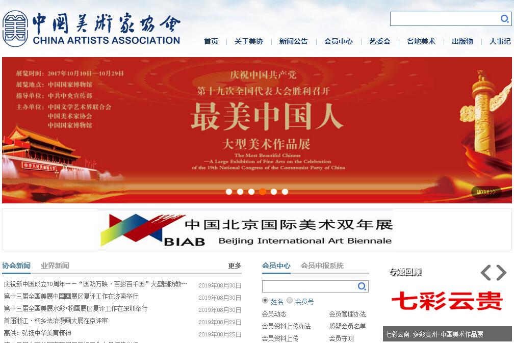 中國美術家協(xié)會(簡稱中國美協(xié))成立于1949年,是中國共產(chǎn)黨領導的、全國各民族美術家組成的專業(yè)性人民團體,是黨和政府聯(lián)系美術界的橋梁和紐帶,是繁榮發(fā)展社會主義文藝事業(yè)、建設社會主義文化強國的重要力量。中國美術家協(xié)會是中國文學藝術界聯(lián)合會的團體會員。中國美術家協(xié)會貫徹執(zhí)行黨的文藝方針政策,堅持以人民為中心的工作導向和創(chuàng)作導向,圍繞中心,服務大局,面向基層,服務群眾,與時俱進,改革創(chuàng)新,積極履行團結(jié)引導、聯(lián)絡協(xié)調(diào)、服務管理、自律維權(quán)的基本職能,組織開展學習培訓、深入生活、采風創(chuàng)作、評獎辦節(jié)、成果展示、理論研討、出版宣傳、文藝志愿服務、對外交流和權(quán)益保護等各項工作,致力于我國美術事業(yè)的繁榮發(fā)展,努力成為廣大美術工作者的溫馨之家。中國美術家協(xié)會實行團體會員和個人會員制。目前有團體會員32個,包括31個省、自治區(qū)、直轄市美協(xié),新疆生產(chǎn)建設兵團美協(xié)。個人會員15500多人。中國美術家協(xié)會的最高權(quán)力機構(gòu)是中國美術家協(xié)會全國代表大會。全國代表大會選舉產(chǎn)生理事會。理事會選舉產(chǎn)生主席一人、副主席若干人組成主席團。主席團任命秘書長一人、副秘書長若干人。中國美術家協(xié)會全國代表大會每五年召開一次,全國代表大會閉會期間,由理事會執(zhí)行代表大會決議。理事會閉會期間,由主席團執(zhí)行代表大會和理事會的決議,駐會副主席主持協(xié)會日常工作。中國美術家協(xié)會會址設在北京。