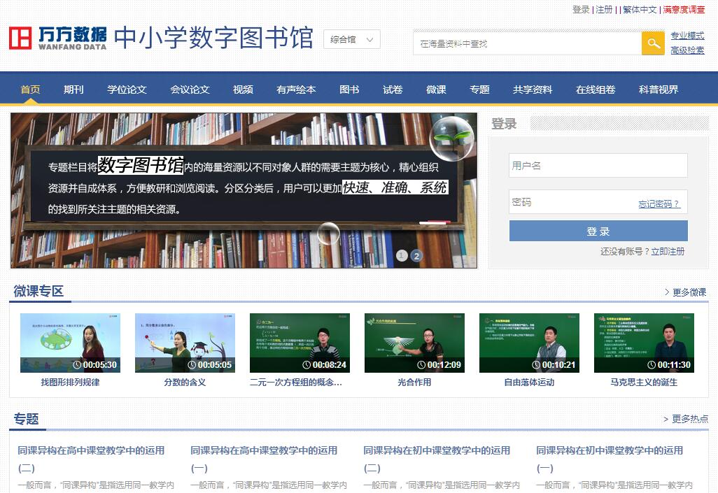 萬方數(shù)據中小學數(shù)字圖書館。1993年,北京萬方數(shù)據公司正式成立,是國內較早提供專業(yè)數(shù)據庫服務的公司。1997年,萬方數(shù)據(集團)公司成立,科技信息服務網站中國信息(Chinainfo)正式對外服務。2000年,國家科技部直屬事業(yè)單位中國科學技術信息研究所聯(lián)合其他4家單位發(fā)起組建了北京萬方數(shù)據股份有限公司(以下簡稱“萬方數(shù)據”)。10多年來,萬方數(shù)據保持穩(wěn)定快速的發(fā)展,已成為一家以提供信息資源產品為基礎,同時集信息內容管理解決方案與知識服務為一體的綜合信息內容服務提供商,形成了以“資源+軟件+硬件+服務”為核心的業(yè)務模式。基礎教育業(yè)務是萬方數(shù)據戰(zhàn)略發(fā)展重點之一,基礎教育事業(yè)部全面負責公司基礎教育產品的發(fā)展規(guī)劃、產品開發(fā),市場推廣與客服支持工作,并負責指導、協(xié)調公司各銷售大區(qū)基礎教育產品的銷售活動。我們的愿景:以技術創(chuàng)新為驅動,不斷提供超越客戶期望的產品和服務,做知識服務的領跑者。我們的使命:為人們獲取知識、創(chuàng)造知識提供高標準的產品和服務;讓知識的學習、發(fā)現(xiàn)、創(chuàng)造更加愉悅!