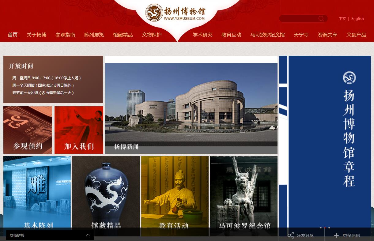 揚(yáng)州博物館、揚(yáng)州中國(guó)雕版印刷博物館(以下簡(jiǎn)稱“雙博館”) 位于揚(yáng)州市邗江區(qū),自然風(fēng)光迷人的明月湖西測(cè),與揚(yáng)州國(guó)際展覽中心隔湖相望,其建筑外型充分體現(xiàn)了人與自然和諧統(tǒng)一,建筑與自然交融合一的設(shè)計(jì)理念。揚(yáng)州博物館的歷史最早可追溯到1951年建立的揚(yáng)州“文物館”及同年籌建的“蘇北博物館”。經(jīng)過60多年的發(fā)展,揚(yáng)州博物館已成為國(guó)際、國(guó)內(nèi)頗有影響的藏品豐富、功能齊全、具有鮮明地方特色的綜合性博物館。2003年8月經(jīng)國(guó)務(wù)院批準(zhǔn)成立揚(yáng)州中國(guó)雕版印刷博物館,將揚(yáng)州廣陵書社收藏的10萬(wàn)片古籍版片并入揚(yáng)州博物館,建立雙博館。建成后的揚(yáng)州雙博館占地總面積50000平方米,建筑面積25000平方米,展區(qū)面積10000平方米,文物庫(kù)房面積5000平方米,辦公區(qū)3000平方米,公共服務(wù)區(qū)7000平方米。館內(nèi)設(shè)有《廣陵潮—揚(yáng)州城市故事》、《書畫廳》、《古代藝術(shù)廳》、《國(guó)寶廳》、《中國(guó)雕版印刷展廳》、《揚(yáng)州雕版印刷展廳》和臨展廳等。根據(jù)揚(yáng)州文化事業(yè)發(fā)展結(jié)構(gòu)及文博事業(yè)發(fā)展要求,揚(yáng)州雙博館被定位為揚(yáng)州地區(qū)最大的文物收藏中心、文博學(xué)術(shù)研究中心、市民文化休閑中心、青少年文博愛國(guó)主義教育基地。開放后的揚(yáng)州雙博館已經(jīng)成為揚(yáng)州文化建設(shè)的標(biāo)志性建筑,成為展示揚(yáng)州傳統(tǒng)文化和現(xiàn)代文明最重要的窗口之一,先后成為國(guó)家一級(jí)博物館、國(guó)家AAAA級(jí)旅游景區(qū)、江蘇省愛國(guó)主義教育基地、江蘇省華人華僑交流基地、揚(yáng)州市對(duì)臺(tái)文化交流基地等。