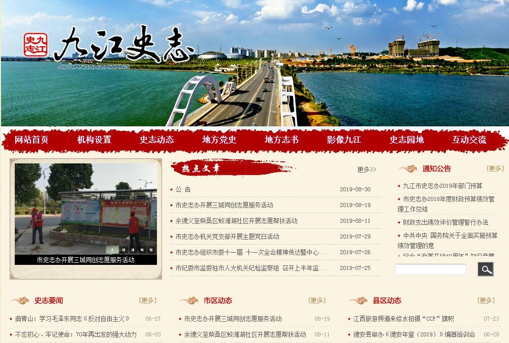 九江市史志辦公室,為市委、市政府直屬正處級參照公務員法管理的事業(yè)單位,列入市委直屬事業(yè)單位序列,對外保留市委黨史研究室、市史志辦公室牌子。其主要職責是:(一)貫徹執(zhí)行黨和國家有關黨史、地方志工作的方針、政策和法規(guī),為市委、市政府制定黨史研究、地方志編修工作計劃,并負責具體貫徹措施,向下級黨史、地方志工作機構部署工作任務,督促檢查其執(zhí)行情況;指導、協(xié)調同級和下級的有關部門、學術團體的黨史、地方志業(yè)務工作;培訓全市黨史、地方志業(yè)務干部。(二)征集、整理和研究九江地方黨史資料,編輯出版地方黨史、革命史和黨史人物傳記等書刊,為經濟和社會發(fā)展大局服務。(三)圍繞黨的中心工作,運用黨史資料和研究成果進行黨史宣傳教育工作,對地方黨史、革命史的重要事件和重要人物開展紀念活動,積極配合相關部門開展革命遺址、遺跡的保護、開發(fā)和利用,充分發(fā)揮黨史工作資政育人的社會功能。(四)負責組織實施《九江市志》、《九江年鑒》的編修出版工作。負責復審核準縣(市、區(qū))志書出版。(五)負責收集、整理、研究地情資料、組織整理、出版歷代志書、提供地情咨詢服務。(六)負責與上、下級與相關業(yè)務對口單位的協(xié)調、交流、聯(lián)絡工作,開展黨史、地方志理論研究。(七)承辦市委、市政府和上級黨史、地方志部門交辦的其他工作任務。