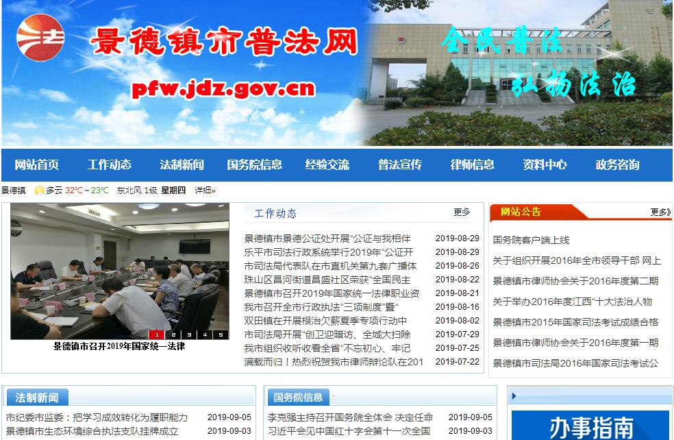 | 網(wǎng)站簡(jiǎn)介: 景德鎮(zhèn)普法網(wǎng)由景德鎮(zhèn)市普及法律常識(shí)工作領(lǐng)導(dǎo)小組辦公室,景德鎮(zhèn)市司法局主辦。 |