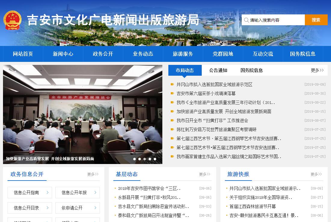 吉安市文化廣電新聞出版旅游局主要職責(zé):(一)貫徹執(zhí)行黨和國家關(guān)于文化、旅游、廣電、新聞出版方面的法律、法規(guī)、規(guī)章和方針政策,起草相關(guān)地方性法規(guī)、規(guī)章和規(guī)范性文件。指導(dǎo)全市文化、旅游、廣電、新聞出版行政審批和安全生產(chǎn)工作。(二)統(tǒng)籌全市文化廣電新聞出版旅游產(chǎn)業(yè)和民航業(yè)發(fā)展,推進(jìn)文化和旅游融合發(fā)展。研究擬訂全市文化、旅游、廣電、新聞出版發(fā)展戰(zhàn)略、發(fā)展規(guī)劃、產(chǎn)業(yè)政策、航線計劃和管理辦法,并負(fù)責(zé)組織實(shí)施。推進(jìn)文化、旅游、廣電、新聞出版體制機(jī)制改革。(三)統(tǒng)籌規(guī)劃全市文化產(chǎn)業(yè)和旅游產(chǎn)業(yè),組織實(shí)施文化和旅游資源普查、挖掘、保護(hù)和利用工作,促進(jìn)文化產(chǎn)業(yè)和旅游產(chǎn)業(yè)融合發(fā)展。(四)負(fù)責(zé)全市范圍內(nèi)的廣播電影電視、電子出版物、期刊、圖書報刊出版宣傳發(fā)行、監(jiān)督和管理工作,堅(jiān)持正確的輿論導(dǎo)向。(五)負(fù)責(zé)公共文化事業(yè)發(fā)展,推進(jìn)全市公共文化服務(wù)體系建設(shè)和旅游公共服務(wù)建設(shè),深入實(shí)施文化惠民工程,統(tǒng)籌推進(jìn)基本公共文化服務(wù)標(biāo)準(zhǔn)化、均等化。直接管理市級公共文化設(shè)施,規(guī)劃、指導(dǎo)、監(jiān)督縣(市、區(qū))基層文化設(shè)施建設(shè)。(六)負(fù)責(zé)全市藝術(shù)創(chuàng)作生產(chǎn)、藝術(shù)教育及培訓(xùn)研究,扶持體現(xiàn)社會主義核心價值觀、具有導(dǎo)向性代表性示范性的文藝作品,推動各門類藝術(shù)、各藝術(shù)品種發(fā)展。(七)負(fù)責(zé)全市文物保護(hù)、文物考古、文物和博物館公共服務(wù)體系建設(shè)工作,組織開展文物、博物館安全督察工作。負(fù)責(zé)全市非物質(zhì)文化遺產(chǎn)保護(hù),推動非物質(zhì)文化遺產(chǎn)的保護(hù)、傳承、普及、弘揚(yáng)和振興。(八)負(fù)責(zé)全市廣播電影電視行業(yè)管理工作。監(jiān)督管理全市廣播電影電視、信息網(wǎng)絡(luò)和公共視聽載體播放的視聽節(jié)目,審查其內(nèi)容和質(zhì)量,指導(dǎo)全市廣播電影電視和信息網(wǎng)絡(luò)視聽節(jié)目服務(wù)的科技工作,監(jiān)督管理全市廣播電影電視節(jié)目傳輸、監(jiān)測和安全播出。負(fù)責(zé)省廣電網(wǎng)絡(luò)公司吉安市本級股份及其資產(chǎn)的經(jīng)營管理。(九)負(fù)責(zé)全市新聞出版單位的行業(yè)管理,實(shí)施準(zhǔn)入和退出管理,監(jiān)管出版活動和出版物內(nèi)容。(十)負(fù)責(zé)出版物市場“掃黃打非”工作的計劃、指導(dǎo)、協(xié)調(diào)、實(shí)施。依法查處反動、淫穢色情、封建迷信、渲染兇殺、暴力及其他非法出版物,查處違反出版、印刷、發(fā)行管理的單位和個人,依法保護(hù)出版、印刷、發(fā)行單位及其從業(yè)人員的合法權(quán)益。(十一)負(fù)責(zé)全市范圍內(nèi)印刷復(fù)制業(yè)、報刊出版單位、音像制品制作單位的管理。(十二)負(fù)責(zé)全市范圍內(nèi)著作權(quán)管理工作,承擔(dān)作品自愿登記的審查、報轉(zhuǎn)工作,提供著作權(quán)法律咨詢服務(wù),調(diào)解著作權(quán)糾紛,依法查處著作權(quán)侵權(quán)行為;組織推進(jìn)軟件正版化工作,對全市新聞出版和著作權(quán)管理進(jìn)行指導(dǎo)、并查處重大非法出版活動。(十三)負(fù)責(zé)記者站及全市新聞單位記者證的管理,組織查處重大新聞違法活動。(十四)指導(dǎo)、推進(jìn)全域旅游,管理全市性重大文化和旅游活動。組織全市旅游整體形象推廣,促進(jìn)文化產(chǎn)業(yè)和旅游產(chǎn)業(yè)對外合作及市場推廣,制定和組織實(shí)施旅游市場開發(fā)戰(zhàn)略。指導(dǎo)協(xié)調(diào)假日旅游和紅色旅游工作。指導(dǎo)、管理全市文化、旅游、廣電和新聞出版對外交流、合作和宣傳、推廣工作,組織大型文化和旅游對外及港澳臺交流活動,推動吉安文化走出去。(十五)指導(dǎo)全市文化和旅游科技創(chuàng)新發(fā)展,推進(jìn)文化和旅游行業(yè)信息化、標(biāo)準(zhǔn)化建設(shè)。(十六)指導(dǎo)全市文化、旅游市場發(fā)展,實(shí)施依法設(shè)定的行政權(quán)力事項(xiàng),對文化和旅游市場經(jīng)營進(jìn)行行業(yè)監(jiān)督管理,推進(jìn)文化和旅游行業(yè)信用體系建設(shè),依法規(guī)范文化和旅游市場。(十七)指導(dǎo)全市文化市場綜合執(zhí)法工作,組織查處全市性、跨區(qū)域文化、旅游、文物、出版、廣電等市場的違法行為,督查督辦大案要案,維護(hù)市場秩序。(十八)管理直屬單位。指導(dǎo)文化、旅游、文物、廣電、新聞出版等相關(guān)行業(yè)協(xié)會、學(xué)會工作。(十九)完成市委、市政府交辦的其他任務(wù)。