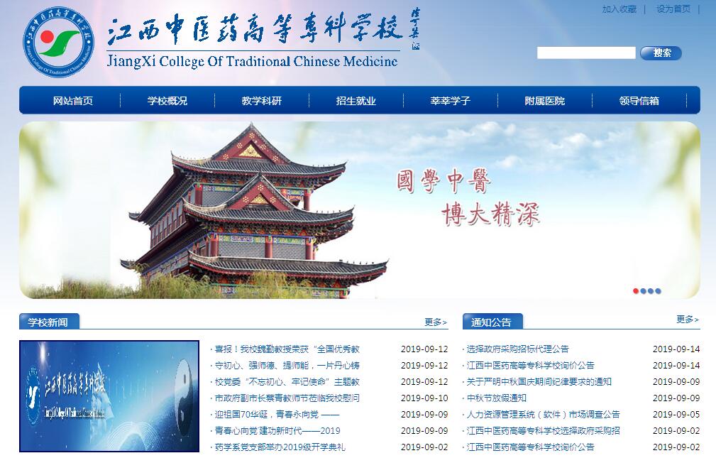 江西中醫(yī)藥高等專科學(xué)校是全國成立較早的中醫(yī)藥高等??茖W(xué)校之一,也是國家中醫(yī)藥管理局重點(diǎn)建設(shè)的新型特色高等院校和江西省唯一一所中醫(yī)藥類專科學(xué)校。其前身為創(chuàng)建于1986年的江西撫州中醫(yī)學(xué)校,2004年升格為高專,管理體制為省市共建、市管為主。學(xué)校坐落于“十一世紀(jì)改革家”王安石、“東方莎士比亞”湯顯祖的故鄉(xiāng),旴江醫(yī)學(xué)、建昌幫發(fā)源地,素有“文化之邦”、“才子之鄉(xiāng)”、“名中醫(yī)之鄉(xiāng)”美譽(yù)的江西省撫州市。學(xué)校共有兩個(gè)校區(qū),總占地面積500 余畝。學(xué)校辦學(xué)條件優(yōu)良,基礎(chǔ)設(shè)施齊備,校園環(huán)境優(yōu)美,是讀書治學(xué)的理想園地。學(xué)校下設(shè)“三系四部”( 醫(yī)療系、藥學(xué)系、護(hù)理系和思想政治理論課教學(xué)部、醫(yī)學(xué)基礎(chǔ)部、公共基礎(chǔ)部、成教部),開設(shè)20個(gè)專業(yè)(方向),形成了中醫(yī)、藥學(xué)、護(hù)理、康復(fù)保健四大專業(yè)群,現(xiàn)有在校生萬余人。學(xué)校有2家附屬醫(yī)院、1個(gè)附屬藥廠和2個(gè)康復(fù)保健基地。目前,學(xué)校有2個(gè)中央財(cái)政重點(diǎn)支持建設(shè)專業(yè)(中醫(yī)學(xué)、中藥)、1個(gè)中央財(cái)政重點(diǎn)支持建設(shè)實(shí)訓(xùn)基地(護(hù)理)、3個(gè)省級(jí)人才培養(yǎng)創(chuàng)新實(shí)驗(yàn)區(qū)、5個(gè)省級(jí)優(yōu)秀教學(xué)團(tuán)隊(duì)、5個(gè)省級(jí)特色專業(yè)、7門省級(jí)精品課程、2門省級(jí)精品課程共享課。學(xué)校有教授27人(其中二級(jí)教授2人、三級(jí)教授3人)、副教授55人,“雙師型”教師占比達(dá)72.5%,國家級(jí)名老中醫(yī)2人、江西省名中醫(yī)3人,享受國務(wù)院特殊津貼專家1人、省政府政府津貼專家2人,市政府特殊津貼專家7人、江西省百千萬人才5人、省高校中青年學(xué)科帶頭人、省高校中青年骨干教師11人、江西省教學(xué)名師3人、江西省教書育人楷模1人、全國五一勞動(dòng)獎(jiǎng)?wù)芦@得者2人、全省五一勞動(dòng)獎(jiǎng)?wù)芦@得者2人,博士生導(dǎo)師1人、碩士生導(dǎo)師5人。學(xué)校堅(jiān)持“以服務(wù)為宗旨、以就業(yè)為導(dǎo)向”的辦學(xué)方針,實(shí)施招生-培養(yǎng)-就業(yè)一體化,不斷提高人才培養(yǎng)質(zhì)量,服務(wù)社會(huì)發(fā)展的要求,社會(huì)影響不斷提升。經(jīng)過反復(fù)探索,學(xué)校逐步明確了“一二三四五”的創(chuàng)新型辦學(xué)思路:即堅(jiān)持“辦好人民滿意大學(xué)”的唯一宗旨;為區(qū)域經(jīng)濟(jì)和行業(yè)發(fā)展兩個(gè)主體服務(wù);緊緊抓住招生、教學(xué)、就業(yè)三大環(huán)節(jié);建好干部、師資、學(xué)工、社團(tuán)四支隊(duì)伍;推進(jìn)教風(fēng)、教師、教學(xué)、教材、教改“五教工程”。近年來,學(xué)校招生增幅在全國同類院校中排第一,教材編寫進(jìn)入全國同類院校第一方陣,學(xué)生技能大賽獲全國團(tuán)體一等獎(jiǎng),全國同類院校中唯一獲得國家自然科學(xué)基金課題立項(xiàng),全國同類院校以及江西唯一獲得國家級(jí)醫(yī)學(xué)流派建設(shè)基地立項(xiàng),就業(yè)率連續(xù)六年在全省醫(yī)藥類高職高專院校中名列第一,學(xué)校獲多項(xiàng)專利在同類院校中排名第一的“七個(gè)一”業(yè)績。學(xué)校先后獲得“全國衛(wèi)生文明建設(shè)先進(jìn)集體”、“全國衛(wèi)生系統(tǒng)先進(jìn)集體”、“江西省文明單位”、“江西省安全文明校園”、“江西省園林化單位”、“全省教育系統(tǒng)‘規(guī)范管理年’活動(dòng)先進(jìn)集體”、“全省教育系統(tǒng)‘創(chuàng)新發(fā)展年’活動(dòng)先進(jìn)集體”、“江西省高等學(xué)校節(jié)約型校園建設(shè)先進(jìn)單位”、“江西省高校安全穩(wěn)定先進(jìn)單位”、 2010—2013年度全省普通高校就業(yè)工作先進(jìn)單位、“江西省依法治校示范校”、江西省高校黨建工作優(yōu)秀高校、首屆中國網(wǎng)民最尊敬的(江西)十大高校等榮譽(yù)稱號(hào)、江西省大學(xué)生安全教育說課比賽獲一等獎(jiǎng)、全國中醫(yī)藥職業(yè)教育技能大賽(針灸推拿技能大賽)團(tuán)體一等獎(jiǎng)、全國中藥傳統(tǒng)技能大賽高職組二等獎(jiǎng)、全國職業(yè)院校護(hù)理技能大賽二等獎(jiǎng)、全國中醫(yī)護(hù)理技能大賽榮獲高職高專組團(tuán)體二等獎(jiǎng)(全國第二名) 等。當(dāng)前,學(xué)校正圍繞升本建院的目標(biāo),沿著建設(shè)“省內(nèi)有優(yōu)勢、國內(nèi)有影響、辦學(xué)有特色、學(xué)生有作為”示范性中醫(yī)藥高等學(xué)校的道路闊步前行。