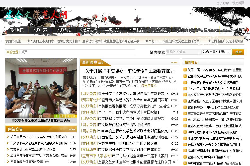 宜春市文聯(lián)座落在宜陽大廈東座13樓,下設(shè)辦公室、組聯(lián)部和文藝創(chuàng)作室,有作家、戲劇家、音樂家、舞蹈家、美術(shù)家、攝影家、書法家、曲藝家、民間文藝家、電影家電視藝術(shù)家等10個文藝家協(xié)會,現(xiàn)有在職干部15人,黨組書記、主席沈曉洪;副主席歐陽娟;黨組成員、副主席刁小軍;調(diào)研員徐艷云;副縣級干部吳志勇;黨組成員、秘書長李維勵。宜春市文學(xué)藝術(shù)界聯(lián)合會前身為袁州專區(qū)文學(xué)藝術(shù)界聯(lián)合會(簡稱袁州專區(qū)文聯(lián))。宜春市(地)文學(xué)藝術(shù)界聯(lián)合會在黨和政府的直接領(lǐng)導(dǎo)下,在江西省文聯(lián)的業(yè)務(wù)指導(dǎo)下,積極貫徹黨的文藝路線方針、政策,充分發(fā)揮“聯(lián)絡(luò)、協(xié)調(diào)、服務(wù)”的職能,團(tuán)結(jié)全市文藝工作者,創(chuàng)作了一大批反映現(xiàn)實生活和革命歷史題材的優(yōu)秀文藝作品,在文學(xué)藝術(shù)各個領(lǐng)域都取得可喜成績,多次被江西省文聯(lián)評為全省先進(jìn)單位。特別是自2000年宜春撤地設(shè)市以來,全市文藝隊伍得到了較好的發(fā)展,涌現(xiàn)了一批新的文藝拔尖人才,目前擁有全國各文藝家協(xié)會會員85人,全省會員480人,全市會員近4000人。各個文藝門類的創(chuàng)作取得了很大的成績,140多部個人優(yōu)秀作品專集由國家正式出版機(jī)構(gòu)先后出版發(fā)行,一些專著獲獎,有的被改編成電視劇,或被報刊連載。獲獎作品的數(shù)量和規(guī)格上了一個新臺階,15件優(yōu)秀作品獲全國大獎,45件作品獲全省文藝大賽一等獎。積極組織開展全國、全省、全市性重大文藝活動,推動整個文聯(lián)工作邁上新臺階,組織、協(xié)調(diào)和參與在宜春舉辦了一系列全國、全省性文藝創(chuàng)作采風(fēng)活動,緊密圍繞全市各項中心工作開展了一系列有影響、聲勢大、示范性強(qiáng)的文藝活動,打造了一批獨具魅力的文藝活動品牌,用文藝形式為宜春又快又好發(fā)展做出了獨特貢獻(xiàn)。