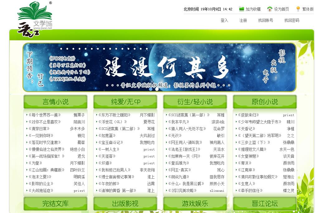 晉江文學(xué)城創(chuàng)立于2003年,是中國大陸范圍內(nèi)具有較高影響力的女性向原創(chuàng)文學(xué)網(wǎng)站之一。擁有在線網(wǎng)絡(luò)小說282余萬部,已出版小說6900余部,簽約版權(quán)作品25萬余部,平均每個月新增簽約版權(quán)在2500部以上。注冊作者數(shù)逾155萬,平均日更新字數(shù)超過3600萬,網(wǎng)站累計發(fā)布字數(shù)超過660億。自2008年1月網(wǎng)站VIP業(yè)務(wù)開通起,網(wǎng)站注冊用戶數(shù)增加580萬。截止到2018年7月,注冊用戶數(shù)已超2700萬,日平均在線時間長達94.19分鐘。在訪問晉江的國內(nèi)用戶中,有67%以上來自上海、北京、臺灣、香港、廣州等經(jīng)濟活躍的一線城市。歷經(jīng)十幾年的風(fēng)雨,晉江文學(xué)城已經(jīng)從一個簡單的文學(xué)愛好者的集散地快速且穩(wěn)健地成長為覆蓋PC、WAP、APP等各類終端的行業(yè)頭部網(wǎng)站,網(wǎng)站流量從2007年末的1500萬,增長至現(xiàn)在的日均pv超3個億,全球有239家和地區(qū)的用戶訪問晉江,其中美國、加拿大、澳大利亞等發(fā)達國家占到很大比重,海外用戶流量比重超過15%。