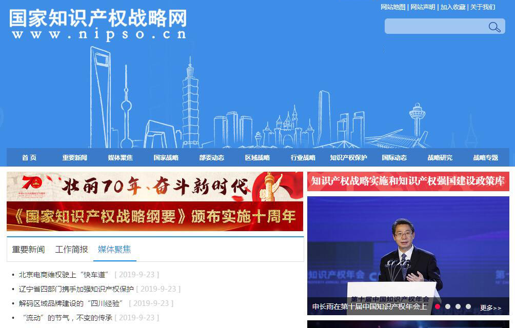 | 網(wǎng)站簡(jiǎn)介: 國(guó)家知識(shí)產(chǎn)權(quán)戰(zhàn)略網(wǎng)由中國(guó)知識(shí)產(chǎn)權(quán)報(bào)社主辦。 |