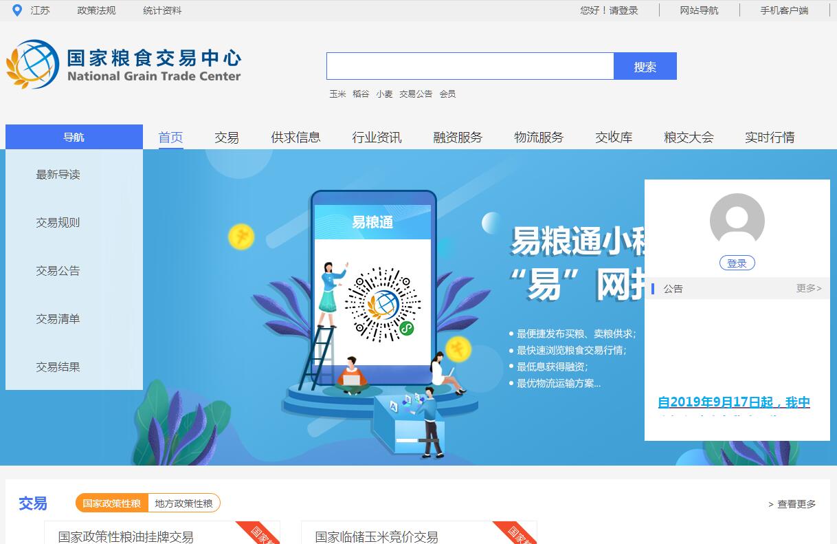 國家糧食局糧食交易協(xié)調(diào)中心(以下簡稱“國家糧食交易中心”)是2014年經(jīng)中編辦批準(zhǔn)設(shè)立的事業(yè)單位,負(fù)責(zé)搭建國家糧食電子交易平臺(tái),承擔(dān)交易系統(tǒng)的平臺(tái)維護(hù)、運(yùn)行管理、創(chuàng)新與推廣;負(fù)責(zé)組織協(xié)調(diào)國家政策性糧食(含油)交易和出庫,開展國家政策性糧食交易資金結(jié)算;指導(dǎo)和監(jiān)督各?。▍^(qū)、市)聯(lián)網(wǎng)的國家糧食交易中心按照“公開、公平、公正、誠實(shí)、守信”的原則開展糧食交易相關(guān)工作;引導(dǎo)地方儲(chǔ)備糧和社會(huì)貿(mào)易糧進(jìn)場(chǎng)交易;負(fù)責(zé)糧食市場(chǎng)交易信息體系建設(shè);承擔(dān)國家糧食局交辦的其他工作。國家糧食交易中心和各?。▍^(qū)、市)聯(lián)網(wǎng)的省級(jí)糧食交易中心共同組成國家糧食交易中心體系。國務(wù)院和國家有關(guān)部門高度重視平臺(tái)建設(shè),《國務(wù)院關(guān)于完善糧食等重要農(nóng)產(chǎn)品收儲(chǔ)制度的意見》(國發(fā)〔2017〕25號(hào))明確提出,要加快建設(shè)全國性、區(qū)域性重要農(nóng)產(chǎn)品交易平臺(tái),完善全國糧食統(tǒng)一競(jìng)價(jià)交易系統(tǒng)。《國務(wù)院辦公廳關(guān)于加快推進(jìn)農(nóng)業(yè)供給側(cè)結(jié)構(gòu)性改革大力發(fā)展糧食產(chǎn)業(yè)經(jīng)濟(jì)的意見》(國辦發(fā)〔2017〕78號(hào))進(jìn)一步要求“完善國家糧食電子交易平臺(tái)體系,拓展物流運(yùn)輸、金融服務(wù)等功能,發(fā)揮其服務(wù)種糧農(nóng)民、購銷企業(yè)的重要作用”。按照國家糧食局總體工作部署,國家糧食交易中心將力爭(zhēng)把國家糧食電子交易平臺(tái)建設(shè)成為國家糧食宏觀調(diào)控的有效載體,服務(wù)糧食“去庫存”的主渠道,推進(jìn)糧食產(chǎn)銷合作的重要平臺(tái),構(gòu)建新型糧食購銷體系的市場(chǎng)龍頭。發(fā)展目標(biāo)是:將全國糧食統(tǒng)一競(jìng)價(jià)交易系統(tǒng)升級(jí)為國家糧食電子交易平臺(tái)。交易品類由單一的政策性糧食競(jìng)價(jià)交易擴(kuò)展為既有政策性糧又有貿(mào)易糧、既有原糧又有成品糧;交易方式既有競(jìng)價(jià)交易又有協(xié)商交易、掛牌交易等;同時(shí),集糧油交易、資金結(jié)算、物流運(yùn)輸、質(zhì)量檢驗(yàn)、融資服務(wù)、信息引導(dǎo)為一體。打造成功能齊備、運(yùn)轉(zhuǎn)規(guī)范、安全可靠、服務(wù)高效的綜合性糧食交易公共服務(wù)平臺(tái)。 建設(shè)四個(gè)子平臺(tái):一是升級(jí)交易平臺(tái),構(gòu)建新型糧食購銷體系;二是搭建信息平臺(tái),形成糧油價(jià)格“風(fēng)向標(biāo)”;三是建設(shè)物流平臺(tái),助力打通“北糧南運(yùn)”通道;四是構(gòu)建融資平臺(tái),緩解糧食企業(yè)貸款難。 抓好八項(xiàng)工作:一是健全國家糧食交易中心體系,形成立體化服務(wù)網(wǎng)絡(luò);二是合理布局平臺(tái)交收庫,推進(jìn)貨物管理規(guī)范化;三是組建物流供應(yīng)鏈實(shí)體,豐富平臺(tái)服務(wù)功能;四是嚴(yán)格質(zhì)量檢驗(yàn)檢測(cè),確保交易標(biāo)的實(shí)物相符;五是引進(jìn)戰(zhàn)略合作伙伴,創(chuàng)新糧食交易模式;六是優(yōu)化會(huì)員服務(wù),提升平臺(tái)服務(wù)質(zhì)量和水平;七是強(qiáng)化技術(shù)保障能力,防范平臺(tái)運(yùn)營風(fēng)險(xiǎn);八是組織舉辦中國糧食交易大會(huì),推動(dòng)線上線下有機(jī)結(jié)合。