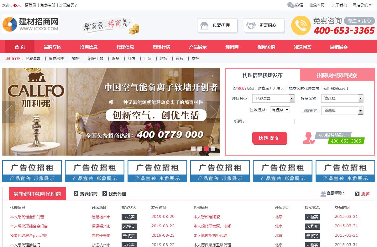 | 網(wǎng)站簡介: 建材互聯(lián)招商網(wǎng)專業(yè)建材招商、建材代理、建材代理商加盟、建材招商加盟、建材經(jīng)銷商、建材品牌代理、建材廠家招代理商、建材展會(huì)資訊等匯聚的建材招商平臺(tái),您還可以免費(fèi)發(fā)布建材招商信息、發(fā)布建材信息等幫助廣大創(chuàng)業(yè)者找到合適自己的建材代理項(xiàng)目,選擇好的建材代理項(xiàng)目首選建材互聯(lián)招商網(wǎng)! |