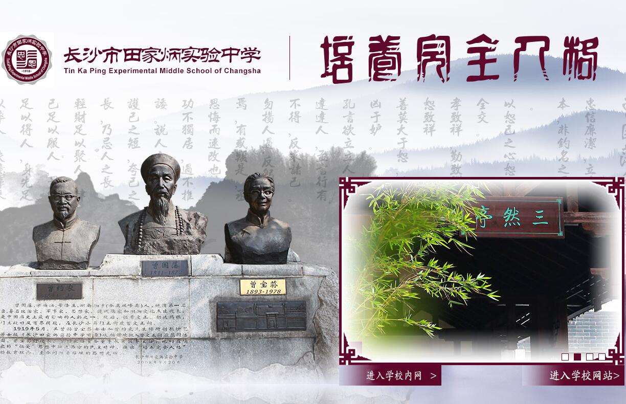長沙市田家炳實(shí)驗(yàn)中學(xué)是長沙市教育局直屬公辦中學(xué)。學(xué)校由曾國藩的曾孫曾寶蓀和曾約農(nóng)先生始創(chuàng)于1918年,將位于水風(fēng)井的曾文正公祠花園建校辦學(xué),融湖湘文化傳統(tǒng)和西方科學(xué)思想于一爐,將忠恕修身、科學(xué)思維、民主管理、服務(wù)社會做為辦學(xué)理念,歷經(jīng)95年辦學(xué)歷史沿革至今成為省級實(shí)驗(yàn)中學(xué)和省級示范性高中的長沙市實(shí)驗(yàn)中學(xué),按照市教育局對直屬省級示范性中學(xué)發(fā)展規(guī)劃,學(xué)校初中部使用原校名——“長沙市田家炳實(shí)驗(yàn)中學(xué)”。市政府支持公辦優(yōu)質(zhì)教育發(fā)展,財政專項(xiàng)資金建設(shè)的全新校園重點(diǎn)工程竣工,建成容納近40個教學(xué)班的規(guī)模和擁有600名學(xué)生全日制寄宿生活條件的全新校舍和配套設(shè)施。學(xué)校將以精湛的辦學(xué)傳統(tǒng)、精良的教學(xué)水準(zhǔn)、精美的校園環(huán)境迎接全市優(yōu)秀學(xué)子來校學(xué)習(xí)。學(xué)校立足于長沙市區(qū)核心精華地域,目的是為了不因遷校而失去極為寶貴的地緣文化傳承,將歷經(jīng)近百年的根植于湖湘?zhèn)鹘y(tǒng)且中西合璧的優(yōu)秀教育文化滋潤當(dāng)代湖湘優(yōu)秀學(xué)子,做為市教育局直屬學(xué)校面向全市適齡學(xué)生舉辦優(yōu)質(zhì)公辦初中。學(xué)校通過校內(nèi)高、初中教師的有計劃流動,始終保持較高比例的高中優(yōu)秀師資在初中教師隊伍中,目的是不斷研究和推行有利于培養(yǎng)學(xué)生銜接初、高中學(xué)段各學(xué)科的思維發(fā)展方式,為形成學(xué)生的可持續(xù)學(xué)習(xí)能力奠定基礎(chǔ),培養(yǎng)出大批適合進(jìn)入優(yōu)質(zhì)普通高中深造的高素質(zhì)的初中畢業(yè)生。學(xué)校在執(zhí)行國家義務(wù)制教育各項(xiàng)課程標(biāo)準(zhǔn)的基礎(chǔ)上,還面向全體學(xué)生重點(diǎn)開設(shè)湖湘文化研習(xí)、現(xiàn)代科技體驗(yàn)、環(huán)境教育、中英文學(xué)鑒賞與創(chuàng)作、聲樂器樂表演、繪畫與書法研習(xí)和多種體育項(xiàng)目等發(fā)展學(xué)生興趣特長的學(xué)校課程和社團(tuán)活動,目的是為每一位學(xué)生在初中三年學(xué)習(xí)過程中提供高水準(zhǔn)初中學(xué)歷教育的同時,創(chuàng)設(shè)有利于個性化充分發(fā)展的素質(zhì)教育和伴隨學(xué)生幸福成長的學(xué)習(xí)成功體驗(yàn)。學(xué)校根據(jù)市教育局中考中招現(xiàn)行政策,爭取每年都能選拔大約20%的優(yōu)秀初中畢業(yè)生按照對口直升等方式進(jìn)入本校高中(長沙市實(shí)驗(yàn)中學(xué))就讀,并歡迎更多的學(xué)生通過中考考入本校高中,目的是讓本校培養(yǎng)的優(yōu)秀畢業(yè)生能夠更直接地享受本校優(yōu)質(zhì)公辦高中的教育資源,最大程度減輕學(xué)生家庭的基礎(chǔ)教育投資負(fù)擔(dān)。