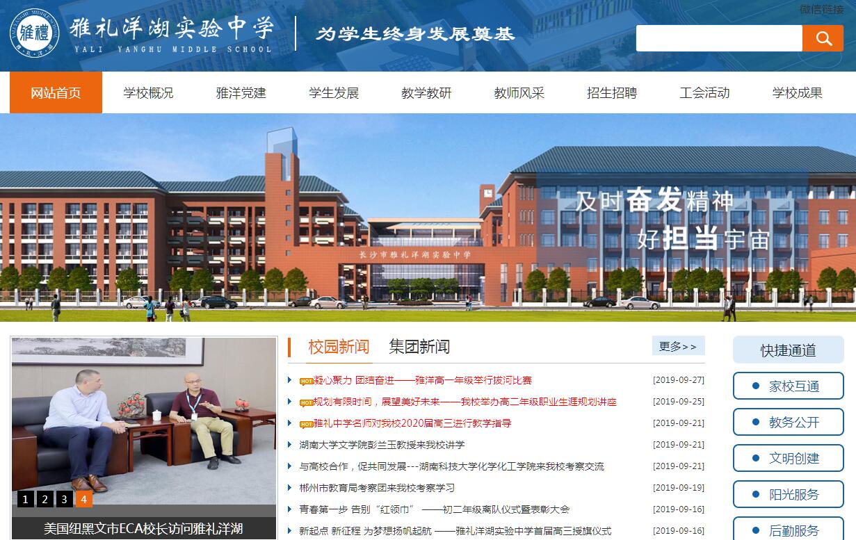 在湖湘文明里,教育的智慧星火,思維之光,革新之氣如湘江碧水,奔騰不息,在每個時代筑成華章。110年來的不斷求索,當初中西文明碰撞的教育火花,已在湖湘教育的原野燎燎百年,在風云變幻的歷史流淌中,成就煌煌盛名;新世紀以來,“經(jīng)天緯地才能,由學問成就,及時奮發(fā)精神,好擔當宇宙”的雅禮校歌更是從楓樹山出發(fā),奔騰于這個城市的東南西北,藍白紅的校服如星綴蒼穹,閃耀在大街小巷,公勤誠樸的雅禮精神已融入這個城市的血脈。一座城、一所學校,一種精神,一個向往。歲月沉淀,時光向前,2017年的春雷喚醒星城大地,也催生一所嶄新雅禮學校的昂揚崛起,作為集團化辦學戰(zhàn)略部署、結(jié)構(gòu)調(diào)整的重要舉措,百又十年后的雅禮,再次邁開她雄偉的步伐,首次跨越湘江,傾力打造雅禮洋湖中學,滌蕩三湘教育風潮,引領(lǐng)品質(zhì)卓越發(fā)展,為推動區(qū)域發(fā)展,創(chuàng)建國家中心城市貢獻自己的新力。一所與國家中心城市以及全國第12個、中部地區(qū)首個國家級新區(qū)——湘江新區(qū)發(fā)展相匹配的高品質(zhì)市屬公辦完全中學;長沙兩型社會建設、洋湖生態(tài)新城、總部經(jīng)濟區(qū)社會經(jīng)濟發(fā)展的教育引擎;現(xiàn)代城市發(fā)展理念和學校治理理念下的教育生態(tài)社區(qū)。學校坐落于長沙市最大最美濕地公園——洋湖濕地生態(tài)公園南門旁,6000畝公園美景凈收眼底,李自健美術(shù)館、謝子龍影像館、洋湖雕塑園、體育公園比鄰而居。地鐵3號線、10余路公交線路穿梭而過,瀟湘大道、洋湖大道、湘府路高架、三環(huán)線所組成的城市交通網(wǎng)絡讓出行變得極為便利。學校占地面積150多畝,投資3.74億,是長沙市最大的中學之一,學校建筑采用環(huán)保、節(jié)能設計,塑膠跑道、人工草皮、室內(nèi)裝修等均采用多種兩型理念和綠色設計實施方案,圖書館、體育館、實驗室等設施設備全市一流。學生食堂、宿舍高標準建設,聘請一線品牌提供后勤服務,讓學生吃得放心,住得安心。湘江岸、洋湖邊、都市里,宜學、宜居、宜生活,是花園中的最美校園,校園中的最美樂園。雅禮中學全面托管,采用雅禮中學管理模式和課程教學方式,統(tǒng)一辦學理念,統(tǒng)一管理標準,統(tǒng)一教學計劃,統(tǒng)一考試評價,薈萃集團教育資源之精華。秉承“為學生終身發(fā)展奠基”理念,實施“自主教育、個性教育、開放教育”策略,構(gòu)建尊重個性、貼近生命、走向自主的課程實施體系和多元兼容的評價體系,培養(yǎng)提升學生的“自立品質(zhì)、家國情懷、國際視野、人文素養(yǎng)、科學精神”,不斷呈現(xiàn)學生個體生命氣象,讓每一位學生都擁有健康健全的人格、融貫中西的智慧以及幸福完整的人生,成為有益于國家、社會的優(yōu)秀人才。市教育局抽調(diào)教育系統(tǒng)年富力強、經(jīng)驗豐富、成績突出的中青年干部組成領(lǐng)導班子,雅禮中學派出校長、教學副校長、業(yè)務管理中層干部和學科骨干教師,初高中教學資源、師資培養(yǎng)與雅禮及集團學校無縫對接,其他教師全部由雅禮中學統(tǒng)一招聘,從全國遴選優(yōu)秀師資,前期安排在雅禮、南雅等集團學校關(guān)鍵教學崗位跟班學習,不斷浸潤雅禮文化,積累教學素養(yǎng)。在雅禮110余年的教育征程里,尋找與追求的是生命個體與自然的和諧發(fā)展,學校與社會的相融共生。以兩型社會建設為出發(fā)點,以人才培養(yǎng)為著力點,整合洋湖生態(tài)新城和湘江新區(qū)自然、社會、歷史、人文等資源,以整個洋湖片區(qū)、湘江新區(qū)和長沙城市為依托,構(gòu)建新高考背景下符合中學生發(fā)展核心素養(yǎng)培育的新型課堂。融入現(xiàn)代城市發(fā)展理念,借鑒國內(nèi)外先進教育思想,突破傳統(tǒng)教育發(fā)展模式,構(gòu)建新型的與國際接軌的教育生態(tài)社區(qū)。同時發(fā)揮6年一貫制完全中學優(yōu)勢,持續(xù)注入雅禮精神強大內(nèi)核驅(qū)動力量,為生命成長奠定堅實基礎(chǔ),拓展學生未來發(fā)展空間。追隨國家2020普及高中教育的步伐,站位于構(gòu)建現(xiàn)代教育的湖湘樣本,雅禮洋湖將以全新的視野、全新的理念、全新的基礎(chǔ),建設一所與社會進步、城市發(fā)展、教育創(chuàng)新完美融合的高品質(zhì)現(xiàn)代化學校。未來,她將以更為宏大的視野,不斷承續(xù)雅禮育人為本、發(fā)展素養(yǎng)的光榮傳統(tǒng),綻放教育內(nèi)涵發(fā)展、品質(zhì)提升、更有活力、更加開放的獨特魅力,成為三湘基礎(chǔ)教育引領(lǐng)時代發(fā)展的新名片。