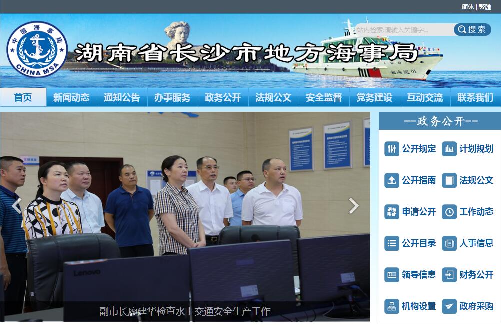 湖南省長(zhǎng)沙市地方海事局(加掛長(zhǎng)沙市航務(wù)管理局、長(zhǎng)沙市船舶檢驗(yàn)局牌子)為正縣級(jí)參公管理事業(yè)單位,設(shè)有12個(gè)內(nèi)設(shè)機(jī)構(gòu)、6個(gè)海事處(派出機(jī)構(gòu)),按章程設(shè)置紀(jì)檢監(jiān)察、機(jī)關(guān)黨委、老干辦、工會(huì)、團(tuán)委。人員編制182名,編外合同制人員110人、離退休人員100人;局黨委設(shè)10個(gè)黨支部、黨員179名。主要承擔(dān)以下十項(xiàng)職能職責(zé):(一)承擔(dān)水上交通安全監(jiān)管職責(zé)。負(fù)責(zé)全市12條河流、573公里通航水域水上通航環(huán)境與通航秩序管理;組織實(shí)施水上巡邏、船舶安全檢查和水上交通管制;審核水上水下施工安全技術(shù)狀況;劃定錨地和禁航水域,發(fā)布航行通告和警告;調(diào)查處理水上交通事故。(二)承擔(dān)水路運(yùn)輸市場(chǎng)管理職責(zé)。負(fù)責(zé)全市水路運(yùn)輸及運(yùn)輸服務(wù)業(yè)市場(chǎng)、港口裝卸搬運(yùn)市場(chǎng)、砂石市場(chǎng)、船舶交易建造市場(chǎng)的管理;對(duì)轄區(qū)37家水運(yùn)企業(yè)、25家水運(yùn)服務(wù)企業(yè)及營(yíng)運(yùn)船舶實(shí)施行政管理,審核發(fā)放水路運(yùn)輸許可證和船舶營(yíng)運(yùn)證,監(jiān)督市場(chǎng)秩序;組織協(xié)調(diào)水路戰(zhàn)備運(yùn)輸和防汛搶險(xiǎn)運(yùn)輸工作。(三)承擔(dān)船舶、船員管理職責(zé)。負(fù)責(zé)全市船舶登記和船舶抵押貸款審核;負(fù)責(zé)四等以下船員和其他從業(yè)人員適任資格培訓(xùn)、評(píng)估、考試和發(fā)證管理;負(fù)責(zé)轄區(qū)內(nèi)船舶、水上設(shè)施、船用產(chǎn)品的營(yíng)運(yùn)檢驗(yàn),船舶圖紙審核及建造技術(shù)審核。目前,全市有各類船舶1100艘,59.5萬(wàn)余總噸位,其中散貨船(含砂石運(yùn)輸船)525艘、集裝箱運(yùn)輸船14艘、客渡船和旅游客船185艘、其它船舶376艘;船舶輪駕及相關(guān)從業(yè)人員1.4萬(wàn)人。(四)承擔(dān)港口、碼頭管理職責(zé)。負(fù)責(zé)對(duì)長(zhǎng)沙港霞凝、新康、銅官、客運(yùn)港區(qū)等4大客貨港區(qū)的港口碼頭建設(shè)和經(jīng)營(yíng)實(shí)施行政管理;對(duì)全市港口岸線、水域使用權(quán)進(jìn)行審核;對(duì)7個(gè)港口作業(yè)區(qū)、20個(gè)客貨碼頭、6個(gè)砂石基地碼頭實(shí)施安全監(jiān)管;調(diào)查處理港口生產(chǎn)、設(shè)備事故。(五)承擔(dān)內(nèi)河航道管理職責(zé)。負(fù)責(zé)湘江、瀏陽(yáng)河、撈刀河等12條內(nèi)河航道的建設(shè)、養(yǎng)護(hù)和管理;組織實(shí)施等級(jí)航道建設(shè)和維護(hù)性工程;設(shè)置和維護(hù)除軍用航標(biāo)、漁業(yè)航標(biāo)以外的航標(biāo)和助航標(biāo)志,管理和發(fā)布航道公告;監(jiān)督航道水域施工。目前,全市共有航道通航里程573公里,其中湘江76公里為三級(jí)航道,瀏陽(yáng)河下游54公里為六級(jí)航道、撈刀河下游12公里為七級(jí)航道,其余均為等級(jí)外航道。(六)承擔(dān)渡口渡船管理職責(zé)。負(fù)責(zé)對(duì)全市63道渡口、81艘渡船、150名渡工和簽單員進(jìn)行管理,牽頭組織對(duì)渡口、渡船進(jìn)行提質(zhì)改造,對(duì)渡運(yùn)從業(yè)人員進(jìn)行專業(yè)培訓(xùn)、安全教育和資質(zhì)許可。2016年全市渡運(yùn)人數(shù)150萬(wàn)人次、渡運(yùn)機(jī)動(dòng)車輛12萬(wàn)臺(tái)次。(七)承擔(dān)樞紐通航管理職責(zé)。負(fù)責(zé)湘江樞紐通航調(diào)度管理,受理船舶的過閘申請(qǐng),編排船舶過閘次序,維護(hù)過閘安全,管理待閘錨地和禁航水域。湘江樞紐從2012年10月試通航以來至2016年底,累計(jì)調(diào)度4.86萬(wàn)閘次,通過船舶28.5萬(wàn)艘次,運(yùn)載貨物41000萬(wàn)噸。(八)承擔(dān)船舶防污染管理職責(zé)。負(fù)責(zé)船舶防污染監(jiān)督管理,防止船舶污染水域環(huán)境,組織實(shí)施船舶防污染提質(zhì)改造,監(jiān)督船舶垃圾、油污等污染物的回收工作,處理船舶污染事故。(九)承擔(dān)水上應(yīng)急救援職責(zé)。制定并組織實(shí)施水上搜救應(yīng)急預(yù)案,負(fù)責(zé)發(fā)布水運(yùn)預(yù)警信息,組織協(xié)調(diào)全市通航水域重大水上搜救、沉船沉物打撈、船舶防抗災(zāi)害性天氣、水域大面積污染的應(yīng)急處置。(十)承擔(dān)非通航水域旅游船舶安全監(jiān)管職責(zé)。負(fù)責(zé)對(duì)公園、水庫(kù)、湖泊、漂流場(chǎng)所等非通航水域的旅游船舶及相關(guān)從業(yè)人員實(shí)施安全監(jiān)管。