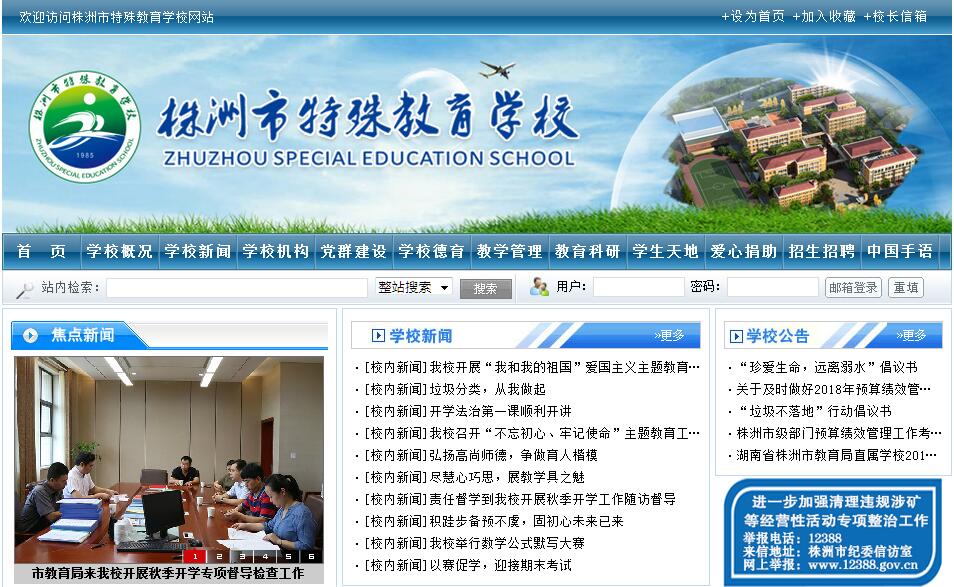 株洲市特殊教育學(xué)校(原名株洲市聾啞盲學(xué)校)創(chuàng)建于1985年,1995年在省內(nèi)率先創(chuàng)辦聾人高中教育,填補(bǔ)了湖南省特教學(xué)校無高中的歷史空白,1998年創(chuàng)辦聾兒學(xué)前康復(fù)教育,2002年創(chuàng)辦啟智教育。學(xué)?,F(xiàn)已發(fā)展成為一所集聾兒學(xué)前康復(fù)教育、義務(wù)教育、高中教育、中等職業(yè)教育、啟智教育和特殊教育科研為一體的綜合性特殊教育學(xué)校。學(xué)?,F(xiàn)有22個(gè)教學(xué)班,在校學(xué)生205人。師資力量雄厚,教師素質(zhì)整體優(yōu)良。現(xiàn)有教職工93人,其中專任教師89人,25名高級職稱教師,4名全國優(yōu)秀教師、10名省市優(yōu)秀教師、3名市級學(xué)科帶頭人、3名市級骨干教師。學(xué)校占地30畝,建筑面積12500平方米,環(huán)境優(yōu)雅,校內(nèi)有200米環(huán)形跑道、100米直跑道、標(biāo)準(zhǔn)籃球場、健身房、先進(jìn)的多媒體教室、學(xué)生電腦室、語訓(xùn)房、律動室、感統(tǒng)訓(xùn)練室和教師電子備課室、現(xiàn)代化聽覺言語康復(fù)大樓、室內(nèi)風(fēng)雨操場。我校始終堅(jiān)持以人為本,銳意改革,踐行“飲水思源,愛國愛校”的要求,牢固樹立“服務(wù)學(xué)生,育殘成才”的價(jià)值取向,將學(xué)校建設(shè)成以文化教育為基礎(chǔ),教育科研為龍頭、中等職業(yè)教育和學(xué)前康復(fù)教育為重點(diǎn),融盲、聾、弱智三類殘疾教育為一體的綜合性特殊教育學(xué)校。堅(jiān)持滿足殘疾學(xué)生的需求與提高辦學(xué)效益相結(jié)合原則,突出創(chuàng)新特色,努力挖掘殘疾學(xué)生的內(nèi)在潛能,培養(yǎng)一批既有文化素養(yǎng)又有一技之長的殘而不廢的合格勞動者,使學(xué)校力爭成為“管理規(guī)范,隊(duì)伍過硬,設(shè)施完善,特色突出,質(zhì)量優(yōu)良”的現(xiàn)代化特殊教育學(xué)校。學(xué)校辦學(xué)特色:1、文化教育與職業(yè)教育并舉。通過加強(qiáng)職業(yè)教育,培養(yǎng)學(xué)生的一技之長,增強(qiáng)學(xué)生適應(yīng)社會的能力。學(xué)校立足株洲當(dāng)?shù)厣鐣?jīng)濟(jì)實(shí)際,在傳授基礎(chǔ)文化知識的同時(shí),先后開設(shè)了醫(yī)療護(hù)理、縫紉、工藝美術(shù)、美容美發(fā)、園林藝術(shù)、辦公自動化等職業(yè)專業(yè)課。以就業(yè)為導(dǎo)向探索職業(yè)教育模式,走校校、校企聯(lián)合辦學(xué)路子,畢業(yè)生就業(yè)率達(dá)100%。1995年學(xué)校創(chuàng)辦了湖南省第一個(gè)聾人職業(yè)高中班,首屆學(xué)生有2名考入長春大學(xué)特教學(xué)院裝潢藝術(shù)本科專業(yè),填補(bǔ)了我省特教學(xué)校學(xué)生考入特教高等院校的歷史空白。到2016年止,學(xué)校先后有100余名聾生考入長春大學(xué)特教學(xué)院、北京聯(lián)合大學(xué)、天津理工學(xué)院、中州大學(xué)、長沙職業(yè)特校學(xué)院,高考升學(xué)率100%。更多的殘疾學(xué)生通過掌握一技之長,畢業(yè)后走向社會,找到了適合自己的工作,成為一名自食其力的勞動者和建設(shè)者。2、注重藝體教學(xué),促進(jìn)學(xué)生全面發(fā)展。學(xué)校在抓好文化教育、職業(yè)教育的同時(shí),十分重視學(xué)生藝體特長的培養(yǎng),這是建校以來學(xué)校一直堅(jiān)持的辦學(xué)理念,已成為學(xué)校辦學(xué)的突出特色,長盛不衰。學(xué)生體育代表隊(duì)先后30次參加國家、省、市級體育競賽,共獲金牌105枚,銀牌131枚,銅牌170枚,破省殘疾人田徑紀(jì)錄12項(xiàng)共31人次。2002年組建的學(xué)生男子籃球隊(duì)從2003年來連續(xù)代表湖南省參加全國聾人籃球錦標(biāo)賽均取得較好的成績。2005年湖南省第六屆殘疾學(xué)生運(yùn)動會上,學(xué)校運(yùn)動員獲得金牌總數(shù)第一的好成績。在2006年9月舉行的湖南省第七屆殘運(yùn)會上,學(xué)生一舉奪得十一枚金牌,為株洲市在本次運(yùn)動會上獲得團(tuán)體總分第一、金牌總數(shù)第一,作出了突出貢獻(xiàn)。學(xué)校也被評為本屆運(yùn)動會的先進(jìn)單位。在湖南省第八屆殘疾人運(yùn)動會上,我校學(xué)生獲得4枚金牌,12枚銀牌和2枚銅牌的優(yōu)異成績,學(xué)校獲“推薦人才獎”。學(xué)校狠抓文藝訓(xùn)練, 近年來,文藝節(jié)目在國家、省、市文藝調(diào)演中榮獲8個(gè)一等獎、9個(gè)二等獎、5個(gè)三等獎。美術(shù)作品參加全國、省、市比賽,獲一等獎113個(gè)、二等獎108個(gè)、三等獎188個(gè)?!断创骸帆@全國殘疾人文藝調(diào)演二等獎,器樂伴舞《洞庭風(fēng)光》獲全國殘疾人文藝調(diào)演三等獎,《守歲》獲全國第二屆聾校學(xué)生文藝調(diào)演一等獎,《等你來》獲全國第二屆聾校學(xué)生文藝調(diào)演三等獎,《浪花》獲省聾校文藝調(diào)演三等獎,《村丫丫》獲湖南省聾校文藝調(diào)演二等獎,《渴望》獲株洲市中學(xué)生文藝調(diào)演一等獎,學(xué)校被評為“全國特殊藝術(shù)人才培養(yǎng)基地”。3、發(fā)展學(xué)前康復(fù)教育,讓聾兒回歸主流。學(xué)校聾兒康復(fù)教育創(chuàng)辦于1998年,目前有在訓(xùn)聾兒達(dá)53人,學(xué)校配備了精湛的師資和價(jià)值近百萬元的高科技康復(fù)訓(xùn)練設(shè)備,這在省內(nèi)是獨(dú)一無二的,學(xué)校提出的“醫(yī)、教、練”相結(ji