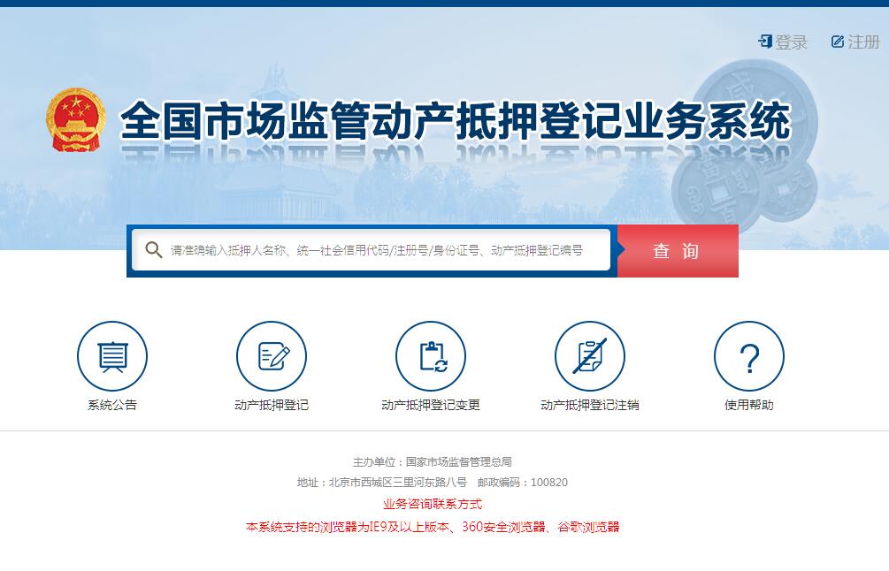 | 網(wǎng)站名稱: | 全國市場監(jiān)管動產(chǎn)抵押登記業(yè)務(wù)系統(tǒng) | ||