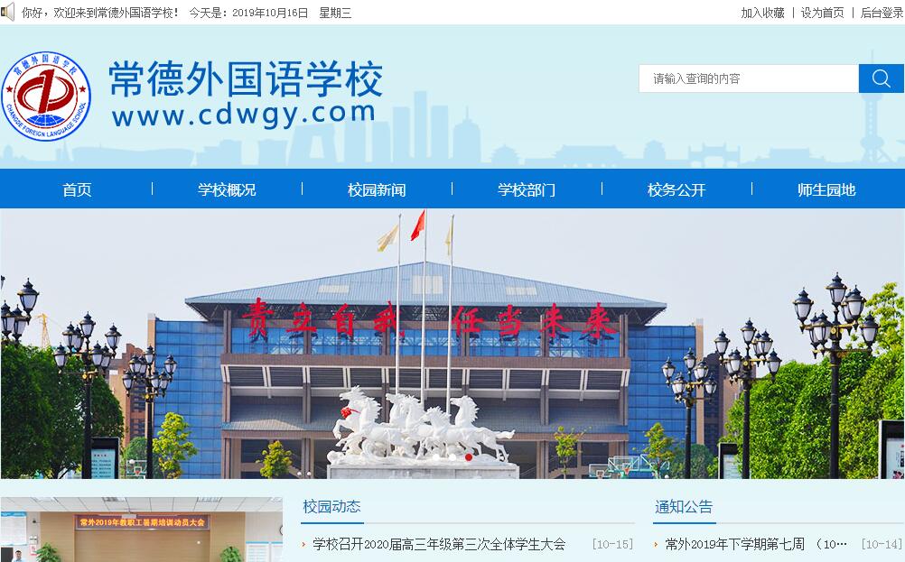 常德外國語學(xué)校(白馬湖中學(xué))是一所由市政府一次性投入近3億元,高起點(diǎn)、高規(guī)格、高標(biāo)準(zhǔn)的市教育局直屬公辦、全日制、寄宿制完全中學(xué),是我市第一所以外語為特色的公辦完全中學(xué),是全國外語實(shí)驗(yàn)學(xué)校、教育部AFS項(xiàng)目學(xué)校、湖南省教育國際交流協(xié)會(huì)基地學(xué)校、湖南省生態(tài)文明示范學(xué)校、湖南省中小學(xué)教師培訓(xùn)基地學(xué)校、湖南省書香校園、湖南省食品安全示范學(xué)校、湖南省防震減災(zāi)科普教育示范學(xué)校。學(xué)校坐落于常德市西北新城區(qū)白馬湖畔,南鄰白馬湖公園,北接丁玲公園,與湖南文理學(xué)院隔街相望,環(huán)境宜人,布局規(guī)整,文化氣息濃郁。學(xué)校占地面積160畝,建筑面積約6萬平方米,各類基礎(chǔ)設(shè)施齊全實(shí)用,各種教學(xué)設(shè)施齊備先進(jìn)。學(xué)校確立了“責(zé)澤未來”的主題文化,秉承“為每一個(gè)孩子創(chuàng)新發(fā)展、終身發(fā)展服務(wù),讓每一個(gè)孩子積極自信、健康快樂成長”的辦學(xué)理念和“率先垂范、民主管理、人文關(guān)懷”的管理理念,堅(jiān)持“依法治校、以德立校、質(zhì)量強(qiáng)校、特色興校”的辦學(xué)思路和“文化引領(lǐng)、層級(jí)管理、講究實(shí)效、共同發(fā)展”的管理思路,致力實(shí)現(xiàn)“教師幸福、學(xué)生快樂、家長信任、社會(huì)贊譽(yù)的現(xiàn)代化特色學(xué)?!钡霓k學(xué)目標(biāo)和“為培養(yǎng)全面發(fā)展和學(xué)有特長的高素質(zhì)人才奠基”的育人目標(biāo),努力打造“德育為首、外語見長、人文優(yōu)先、能力至上”的辦學(xué)特色和辦學(xué)品牌。學(xué)?,F(xiàn)有教職工219人,其中特級(jí)教師、正高級(jí)教師、高級(jí)教師47人,研究生(含在職研究生)學(xué)歷16人,省、市級(jí)學(xué)科帶頭人、骨干教師19人,湖南省首批名師工作室(高中歷史)首席名師1人。全校設(shè)有設(shè)高中部、初中部、國際部三個(gè)教學(xué)部門,教學(xué)班級(jí)51個(gè)(初高中各24個(gè)班、3個(gè)國際課程班),學(xué)生 2500多人。學(xué)校始終堅(jiān)持以文明創(chuàng)建為引領(lǐng),致力打造“雅致校園”、“書香校園”、“快樂校園”、“智慧校園”、“文明校園”。堅(jiān)持以德育為首位,圍繞學(xué)生的文明養(yǎng)成教育、法紀(jì)安全教育、感恩責(zé)任教育、理想前途教育、生命健康教育,努力實(shí)現(xiàn)全面育人,全員育人,全程育人,全方位育人,力抓以德立校;堅(jiān)持以法制為準(zhǔn)則,學(xué)校依法辦學(xué),教師依法從教,形成平等公正公開的育人環(huán)境,狠抓依法治校;堅(jiān)持以課程為支撐,創(chuàng)新社團(tuán)活動(dòng)、人文課等綜合素質(zhì)拓展課程,培養(yǎng)學(xué)生的核心素養(yǎng),提高學(xué)生的綜合素質(zhì),堅(jiān)持以隊(duì)伍為保證,助力教師的專業(yè)成長,開展課堂教學(xué)改革,構(gòu)建生本高效課堂,重抓質(zhì)量強(qiáng)校;堅(jiān)持以外語為特色,通過英語小班化教學(xué)、外教執(zhí)教口語課、使用兩套英語教材、舉辦外語節(jié)、中外教師交流和學(xué)生交換、開辦高中國際課程班、開展韓語、日語、俄語、西班牙語、德語等小語種社團(tuán)活動(dòng),狠抓特色興校。學(xué)校辦學(xué)理念先進(jìn)、管理效能突出、師資隊(duì)伍雄厚、辦學(xué)特色鮮明、教育教學(xué)成績優(yōu)秀,連續(xù)多次榮獲常德市普通高中辦學(xué)水平綜合評(píng)估優(yōu)秀單位、普通高中學(xué)業(yè)水平考試優(yōu)秀單位、市直教育系統(tǒng)目標(biāo)管理先進(jìn)單位。自辦學(xué)以來,學(xué)校獲得了上級(jí)教育主管部門、社會(huì)各界、家長和學(xué)生的充分肯定和一致好評(píng)。站在全新的起點(diǎn)上,全體常外人將更加滿懷激情,堅(jiān)定信心,朝著“辦名校、鑄名師、育名生”的發(fā)展方向闊步前行。