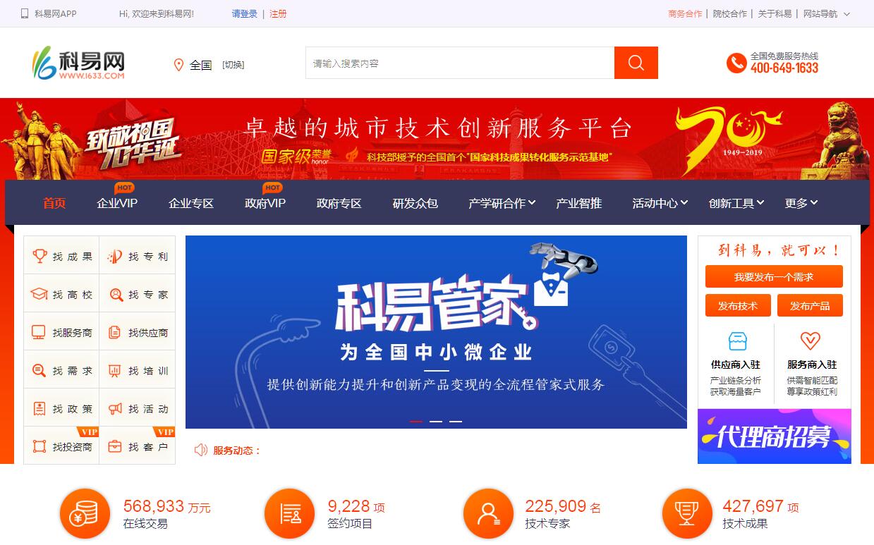 科易網(wǎng)( www.1633.com ) 由廈門科易網(wǎng)科技有限公司創(chuàng)建于2007年5月,創(chuàng)始人為林國海先生。作為科技服務(wù)行業(yè)的領(lǐng)軍企業(yè),科易網(wǎng)是卓越的城市技術(shù)創(chuàng)新服務(wù)平臺,是優(yōu)秀的城市科技創(chuàng)新服務(wù)提供商??埔拙W(wǎng)以技術(shù)創(chuàng)新為主題,面向企業(yè)、機構(gòu)、政府三大主體提供服務(wù)。十余年來,科易網(wǎng)始終以推動技術(shù)交易與科技創(chuàng)新為主軸,借助“互聯(lián)網(wǎng) + 人工智能 + 科技服務(wù)”模式,依托線上平臺,開展線上與線下相結(jié)合的技術(shù)轉(zhuǎn)移與科技服務(wù)工作,引領(lǐng)中國科技服務(wù)行業(yè)服務(wù)模式的變革,并在實踐中彰顯成效??埔拙W(wǎng)卓越的成績得到各級政府部門及領(lǐng)導(dǎo)的高度肯定,累計到訪參觀考察科易網(wǎng)的政府部門突破700家,科技部、工信部、教育部、公安部、科技部火炬中心、國家獎勵辦等多個部委領(lǐng)導(dǎo)均曾專門帶隊考察。同時,作為科技服務(wù)行業(yè)的領(lǐng)軍企業(yè),科易網(wǎng)也得到各大媒體的廣泛關(guān)注,中央電視臺、各地電視臺,科技部官網(wǎng)、科技部火炬中心官網(wǎng),科技日報、經(jīng)濟日報、廈門日報、南方日報等新聞媒體均對科易網(wǎng)及科易網(wǎng)運營的區(qū)域技術(shù)市場創(chuàng)新服務(wù)模式進行多次報道,其中《新華日報》還在報道中評價科易網(wǎng)是國內(nèi)運營最成功的科技成果轉(zhuǎn)化服務(wù)平臺!由首都科技服務(wù)業(yè)協(xié)會、中國標(biāo)準(zhǔn)化研究院、廈門科易網(wǎng)科技有限公司、北京科技協(xié)作中心四家單位聯(lián)合起草的《科技成果互聯(lián)網(wǎng)交易服務(wù)規(guī)范》(T/BTSA 003-2017)已正式發(fā)布。該標(biāo)準(zhǔn)參照科易網(wǎng)的在線技術(shù)交易服務(wù)系統(tǒng)——“科易寶”的服務(wù)流程及實踐經(jīng)驗制訂,解決了基于互聯(lián)網(wǎng)的科技成果交易流程規(guī)范問題,適用于各類科技成果轉(zhuǎn)化平臺、技術(shù)轉(zhuǎn)移服務(wù)平臺,是技術(shù)轉(zhuǎn)移行業(yè)具有里程碑意義的事件。 目前,該標(biāo)準(zhǔn)已在科易網(wǎng)建設(shè)、運營的全國近百個區(qū)域技術(shù)市場實踐應(yīng)用,并取得良好的反饋效果,按照該標(biāo)準(zhǔn)提供的科技成果互聯(lián)網(wǎng)交易服務(wù),實現(xiàn)的在線技術(shù)交易額已超過55億元。另外,首都科技服務(wù)業(yè)協(xié)會就在線技術(shù)交易價格評估系統(tǒng)標(biāo)準(zhǔn)化問題再次到訪科易網(wǎng)展開調(diào)研,相信不久的將來在線技術(shù)交易價格評估也將有標(biāo)可依。