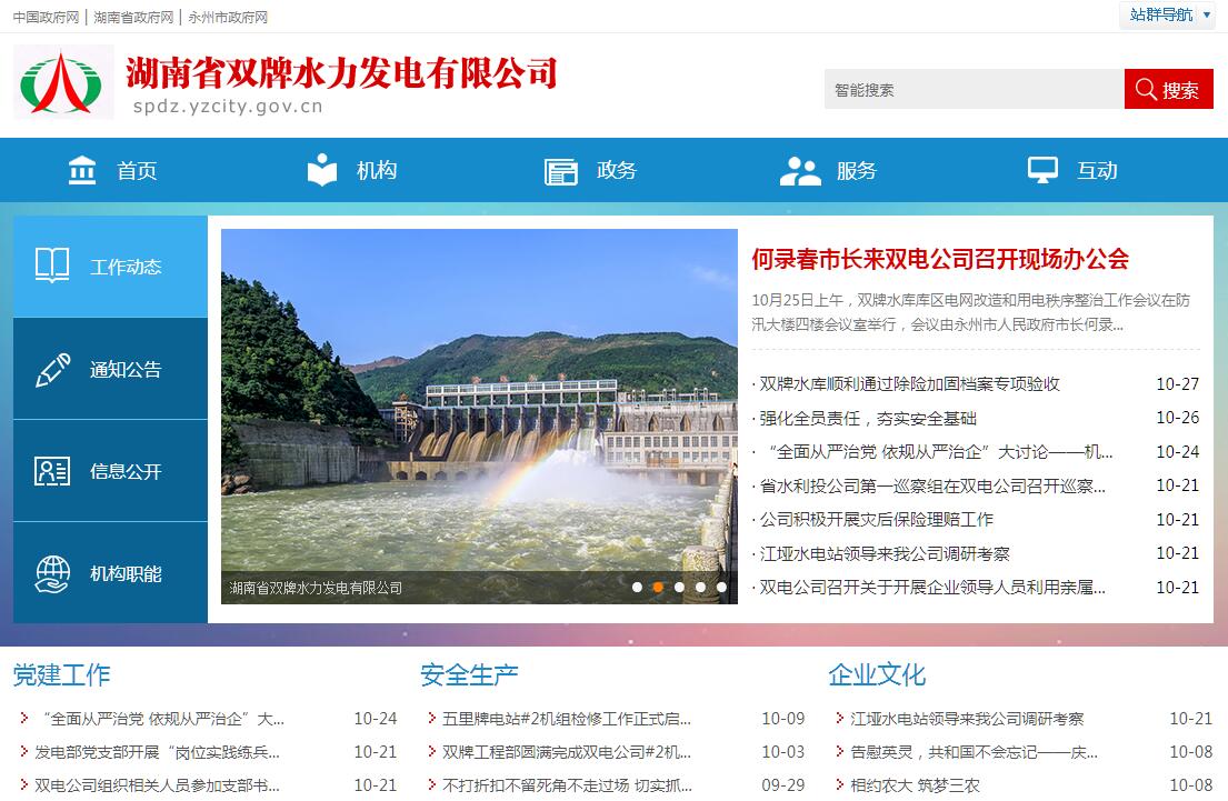 湖南省雙牌水力發(fā)電有限公司位于雙牌境內(nèi)的瀟水河畔,是一座集發(fā)電、灌溉、航運(yùn)與防洪等綜合效益為一體的大型國(guó)有水利水電樞紐工程。工程由攔河壩、左岸船閘、右岸灌溉渠道和壩后式電站組成。大壩結(jié)構(gòu)為“砼雙支墩大頭壩”,壩高58.8米,壩長(zhǎng)311米。公司總裝機(jī)容量15萬千瓦,設(shè)計(jì)年發(fā)電量5.85億千瓦時(shí)。水庫控制流域面積10594平方公里,總庫容6.9億立方米,是湘江水系調(diào)洪調(diào)峰的骨干水庫。大壩左岸有單線雙向二級(jí)船閘一座,能通過100噸位駁船。右岸的主干渠道綿延92公里,流經(jīng)雙牌、零陵、冷水灘、祁陽4個(gè)縣(區(qū))境,灌溉農(nóng)田32萬多畝。樞紐工程于1958年動(dòng)工,1962年底基本完工,1963年4月1日,經(jīng)湖南省人民政府批準(zhǔn),“湖南省雙牌水電站”掛牌成立,隸屬于湖南水利電力廳管轄,屬省級(jí)中二型企業(yè),1981年水電分家后,劃歸省電力工業(yè)局管轄,1985年1月,劃歸省水利廳管轄。2016年4月移交省國(guó)資委管理。2017年經(jīng)省國(guó)資委批準(zhǔn),更名為“湖南省雙牌水力發(fā)電有限公司”。公司投產(chǎn)50多年來,創(chuàng)造了巨大的經(jīng)濟(jì)效益、社會(huì)效益和生態(tài)效益,累計(jì)發(fā)電近300億千瓦時(shí),創(chuàng)產(chǎn)值30多億元,平均每年上交國(guó)家稅費(fèi)3000多萬元,為湖南經(jīng)濟(jì)發(fā)展作出了突出貢獻(xiàn),獲得“全國(guó)文明單位”、 “全國(guó)優(yōu)秀水利企業(yè)”、“全國(guó)模范職工之家”、“湖南省五一勞動(dòng)獎(jiǎng)狀”、“湖南省文明標(biāo)兵單位”等國(guó)家、省、市縣級(jí)榮譽(yù)190多項(xiàng),被譽(yù)為瀟水河畔一顆璀璨的明珠。