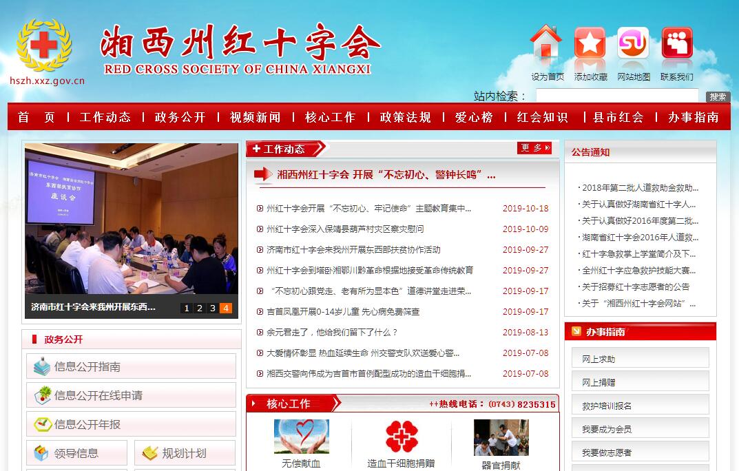 湘西州紅十字會主要職責:1、宣傳和執(zhí)行《中華人民共和國紅十字會法》和《中華人民共和國紅十字標志使用辦法》。2、開展備災救災工作。制定應急預案,建立應急救援隊伍;儲備救災物資建設和管理備災救災設施;在自然災害和突發(fā)事件中,開展救護和救助工作;根據(jù)自然災害和突發(fā)事件的具體情況,由總會向國內外發(fā)出呼吁,依法接受國內外組織和個人的捐贈;地方各級紅十字會在轄區(qū)內發(fā)出呼吁,依法接受國內外組織和個人的捐贈;及時向災區(qū)群眾和受難者提供急需的人道援助,參與災后重建;3、開展應急救護和防病知識的宣傳、普及、培訓;在機關、企事業(yè)單位、社區(qū)、農村、學校和易發(fā)生意外傷害的行業(yè)和人群中開展初級衛(wèi)生救護培訓,組織群眾參加意外傷害和自然災害的現(xiàn)場救護;提高應急條件下的應急救助能力和水平。4、開展無償獻血的宣傳推動工作,與州人民政府共同對先進單位和個人進行表彰獎勵;5、開展社會救助及相關服務工作。對易受損人群進行救助,為困難群眾提供服務;在社區(qū)、農村中建立紅十字服務站,開展服務群眾、宣傳培訓、募捐救助等活動;開展幫助尋找失散親人、重建家庭聯(lián)系等其他人道服務工作;6、依法開展和推動遺體、器官(組織)捐獻工作;開展艾滋病預防控制宣傳和教育、關心愛護艾滋病病毒感染者、患者及其他人道救助工作;7、開展有益于青少年身心健康的紅十字青少年活動;8、開展紅十字志愿服務活動;9、依法開展募捐活動;在公共場所設置紅十字募捐箱并進行管理;10、興辦符合紅十字會宗旨的社會福利事業(yè);11、完成州人民政府委托事宜。