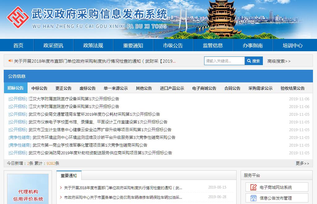 | 網(wǎng)站名稱: | 武漢政府采購信息發(fā)布系統(tǒng) | ||