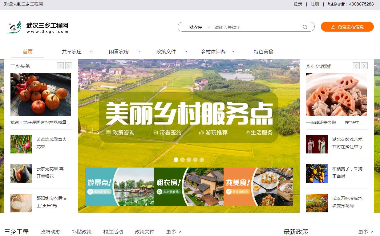 | 網(wǎng)站簡介: 武漢三鄉(xiāng)工程網(wǎng)是由武漢市政府搭建的鄉(xiāng)村振興平臺。提供武漢2萬多套閑置農(nóng)房出租、鄉(xiāng)村康養(yǎng)、鄉(xiāng)村別墅出租。提供農(nóng)莊、鄉(xiāng)村民宿、農(nóng)家樂餐飲、住宿和景點門票預訂、消費優(yōu)惠等鄉(xiāng)村休閑旅游信息。 |