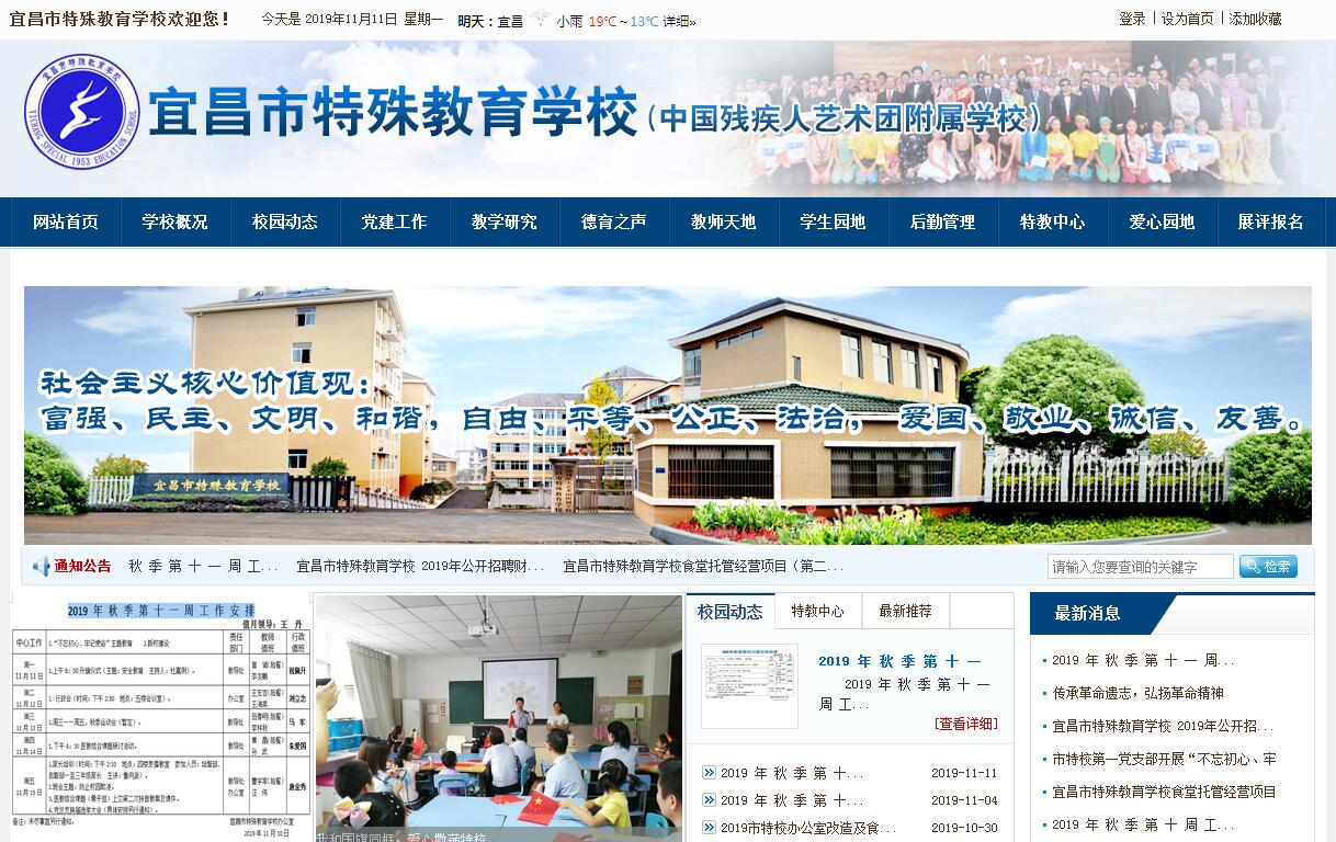 宜昌市特殊教育學(xué)校系對(duì)聽(tīng)障、智障、視障三類(lèi)殘疾兒童少年進(jìn)行學(xué)前教育、九年義務(wù)教育、高中教育、職業(yè)技術(shù)教育的全日制綜合性寄宿制學(xué)校。學(xué)校創(chuàng)辦于1953年(原名宜昌市盲聾啞學(xué)校),1987年試辦弱智兒童班,2001年宜昌市特殊教育研究指導(dǎo)中心掛牌于該校,2006年更名為宜昌市特殊教育學(xué)校,2007年開(kāi)辦宜昌市首屆聾教高中班, 實(shí)現(xiàn)了宜昌特殊教育從9年一貫制向12年一貫制發(fā)展, 2008年12月,學(xué)校整體搬遷至東山開(kāi)發(fā)區(qū)珠海路1號(hào)。學(xué)校位于湖北西南部、長(zhǎng)江中上游結(jié)合部,舉世矚目的三峽工程所在地,堪稱(chēng)“世界水電之都”、中國(guó)經(jīng)濟(jì)發(fā)展“動(dòng)力心臟”的世界水電生態(tài)旅游之城----宜昌。學(xué)校占地面積25畝,建筑面積1萬(wàn)多平方米,可容納24個(gè)教學(xué)班,350名殘疾學(xué)生。多年來(lái),學(xué)校立足“一切為了殘疾學(xué)生”的辦學(xué)理念,本著“學(xué)校有特色、教師有特長(zhǎng)、學(xué)生有特點(diǎn)”的辦學(xué)目標(biāo)和“殘而不廢、殘而有為、自食其力”的育人目標(biāo),克難奮進(jìn),銳意進(jìn)取,培養(yǎng)了一大批殘而不廢、殘而有為、自食其力的勞動(dòng)者,取得了令人矚目的成績(jī)。享譽(yù)全球的千手觀音邰麗華,給胡錦濤總書(shū)記寫(xiě)信、獲“國(guó)際兒童之星”、“全國(guó)十佳少先隊(duì)員”、“五星雛鷹獎(jiǎng)?wù)隆钡娜珖?guó)少代會(huì)常委委員劉丹陽(yáng),繪畫(huà)作品《太空家園》作為普教教材范畫(huà)的劉璐就是我校的杰出學(xué)生代表。學(xué)校也先后被評(píng)為“全國(guó)教育系統(tǒng)先進(jìn)集體”、“全國(guó)未成年人思想道德建設(shè)工作先進(jìn)單位”、“全國(guó)特殊教育先進(jìn)單位”,被中殘聯(lián)藝術(shù)團(tuán)譽(yù)為“特藝搖籃”,被教育部、中殘聯(lián)命名為“全國(guó)特藝人才培訓(xùn)基地”。