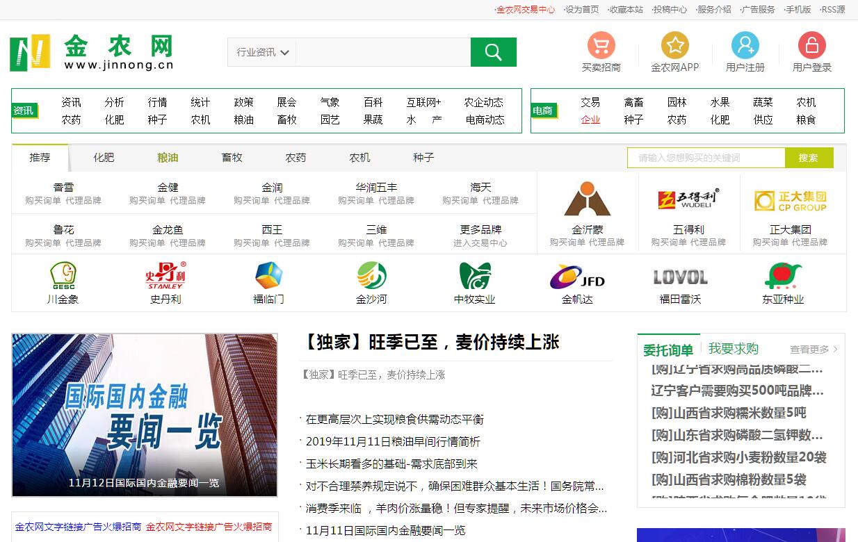 "金農(nóng)網(wǎng)"是一家農(nóng)業(yè)門戶網(wǎng)站,金農(nóng)網(wǎng)是集農(nóng)業(yè)信息、電子商務(wù)、網(wǎng)絡(luò)宣傳于一體的專業(yè)化、信息化農(nóng)業(yè)綜合平臺(tái)。金農(nóng)網(wǎng)(www.jinnong.cn)經(jīng)過10多年時(shí)間的建設(shè),金農(nóng)網(wǎng)月活躍用戶近百萬,已經(jīng)成為規(guī)模較大的農(nóng)業(yè)門戶網(wǎng)站。憑借專業(yè)技術(shù)隊(duì)伍、電信級(jí)硬件資源,為農(nóng)業(yè)行業(yè)打造出專業(yè)級(jí)的產(chǎn)品與服務(wù)。憑借金農(nóng)網(wǎng)工作人員專業(yè)技能和不懈的努力,金農(nóng)網(wǎng)已經(jīng)建立起了專業(yè)化的服務(wù)體系。同時(shí) 在農(nóng)業(yè)信息服務(wù)中更針對(duì)行業(yè)經(jīng)驗(yàn)進(jìn)行了規(guī)劃和整合,從而在橫向的服務(wù)范圍與縱向的地域覆蓋 上建立起了全業(yè)務(wù)的的信息服務(wù)網(wǎng)絡(luò)。
