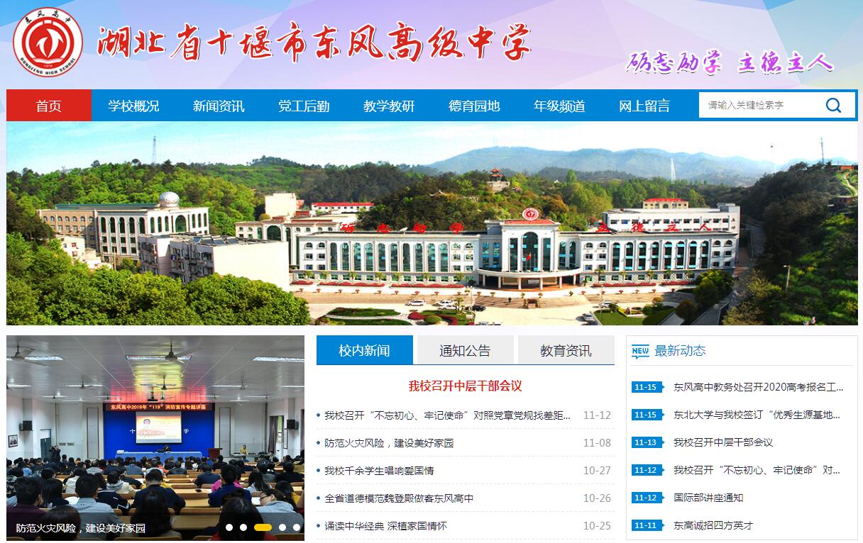 東風(fēng)高級(jí)中學(xué)(原二汽一中、東汽一中、東風(fēng)一中), 簡(jiǎn)稱東風(fēng)高中,位于湖北省十堰市中心地段,人民公園正對(duì)面,張灣區(qū)廣東路田溝巷7號(hào),始建于1978年,是全國(guó)百?gòu)?qiáng)中學(xué)、湖北省重點(diǎn)中學(xué)、湖北省示范高中。東風(fēng)高中,立德樹(shù)人。“促進(jìn)學(xué)生健康成長(zhǎng)是學(xué)校一切工作的出發(fā)點(diǎn)和落腳點(diǎn)”是她的辦學(xué)宗旨;“人文引領(lǐng)、個(gè)性發(fā)展、創(chuàng)新實(shí)踐、承擔(dān)責(zé)任”是她的教育哲學(xué);科學(xué)化、人性化管理是她的特色;大力推進(jìn)新課程改革,積極開(kāi)展幸福德育實(shí)踐是她的品牌。東風(fēng)高中,環(huán)境絕佳,硬件一流。她鬧中取靜,鳥(niǎo)語(yǔ)花香,曲徑通幽,春夏秋冬各有景致。教室寬敞明亮,現(xiàn)代化設(shè)施齊全;實(shí)驗(yàn)室配套完備,圖書(shū)館讓你驚喜?,F(xiàn)代化的錄播室、理化生實(shí)驗(yàn)室、計(jì)算機(jī)教室、聲樂(lè)教室、器樂(lè)教室、舞蹈室、美術(shù)室、汽車模擬駕駛室……應(yīng)有盡有。生活區(qū)雅靜整潔,管理有條不紊。運(yùn)動(dòng)區(qū)400米跑道標(biāo)準(zhǔn)田徑場(chǎng)全省一流,9600平方米球類場(chǎng)地全省領(lǐng)先。東風(fēng)高中,師資精銳。她現(xiàn)有專職教師260人,其中研究生學(xué)歷72人;特級(jí)教師2人;正高級(jí)教師4人,高級(jí)教師140人;湖北名師1人,湖北省骨干教師4人,省級(jí)學(xué)科優(yōu)秀教師23人,十堰市名師3人,市級(jí)學(xué)科帶頭人7人,市級(jí)骨干教師22人。被授予國(guó)家、省、市級(jí)勞動(dòng)模范13人,榮獲優(yōu)秀教師、優(yōu)秀教育工作者稱號(hào)49人。學(xué)養(yǎng)豐厚,理念先進(jìn),業(yè)務(wù)一流,忠誠(chéng)奉獻(xiàn),是東風(fēng)高中教師隊(duì)伍的集體寫(xiě)照。東風(fēng)高中,銳意創(chuàng)新。她踐行新課改的腳步從未停歇,被授予本地區(qū)唯一的綜合實(shí)踐課“全國(guó)先進(jìn)實(shí)驗(yàn)單位”,榮獲“湖北省普通高中課改樣板?!狈Q號(hào)。開(kāi)設(shè)了30多門(mén)校本課程,為學(xué)生的全面發(fā)展和個(gè)性發(fā)展提供了最大可能。她走向國(guó)際,率先成立國(guó)際部。至目前,已先后與加拿大阿爾伯特省金山教育局、英國(guó)阿貝DLD高級(jí)中學(xué)開(kāi)展長(zhǎng)期合作辦學(xué)項(xiàng)目,現(xiàn)已培養(yǎng)了100多名學(xué)生和10多名不同學(xué)科的教師到英國(guó)、美國(guó)、加拿大、澳大利亞和新西蘭等國(guó)家留學(xué)和交流訪問(wèn)。東風(fēng)高中,活動(dòng)精彩。她已成立了20多個(gè)社團(tuán),涵蓋了科技、文藝、體育等眾多領(lǐng)域,拓展學(xué)生視野,提升學(xué)生綜合素質(zhì)。她在教學(xué)成績(jī)一流的情況下,舉辦豐富多彩的校園文化活動(dòng),如健康杯體育節(jié)、智慧杯閱讀節(jié)、美好杯藝術(shù)節(jié)、創(chuàng)造杯科技節(jié)等,激發(fā)學(xué)生學(xué)習(xí)興趣,豐富學(xué)生課余生活,促進(jìn)學(xué)生全面發(fā)展。東風(fēng)高中,春秋鼎盛。步入不惑之年的東風(fēng)高中,正自信而穩(wěn)健地走向成功的高峰。她創(chuàng)造了十堰市高考“十連冠”的驕人成績(jī),對(duì)本地高考質(zhì)量起到了拉動(dòng)和示范作用,為國(guó)家輸送了20000多名合格的畢業(yè)生,先后有60余人考入清華、北大,100多名學(xué)生被國(guó)外著名大學(xué)錄取;每年上省線率達(dá)100%,重本率名列前茅。與高考成績(jī)相映生輝的是,東風(fēng)高中的學(xué)子在各級(jí)各類學(xué)科競(jìng)賽中屢獲殊榮。累計(jì)有601人次獲得國(guó)家級(jí)獎(jiǎng)項(xiàng);千人以上獲得省級(jí)學(xué)科競(jìng)賽獎(jiǎng)。僅最近的五年中,就有97名學(xué)生獲得學(xué)科競(jìng)賽全國(guó)一等獎(jiǎng),245名學(xué)生獲得全國(guó)二、三等獎(jiǎng);140名學(xué)生獲得省級(jí)一等獎(jiǎng),393名學(xué)生獲得省級(jí)二、三等獎(jiǎng)。新時(shí)代,新使命,新征程。東風(fēng)高中將全面貫徹黨的教育方針,落實(shí)立德樹(shù)人的根本任務(wù),為培養(yǎng)德智體美勞全面發(fā)展的社會(huì)主義建設(shè)者和接班人而奮斗!走進(jìn)東風(fēng)高中,你將享受優(yōu)質(zhì)獨(dú)特的教育!走進(jìn)東風(fēng)高中,你將實(shí)現(xiàn)遠(yuǎn)大美好的理想!走進(jìn)東風(fēng)高中,你將成就幸福美好的人生!東風(fēng)高級(jí)中學(xué)熱忱歡迎有志學(xué)子!上東高,乘東風(fēng),必高中!