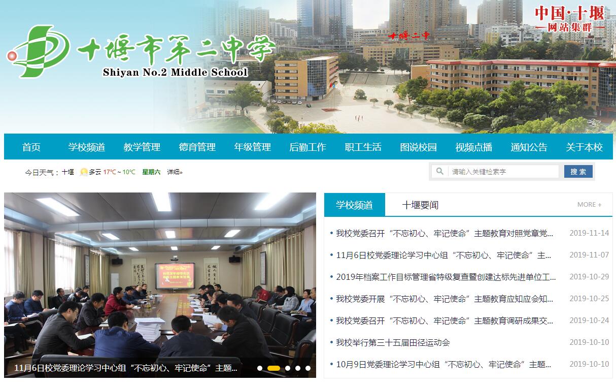 十堰市第二中學(xué)是十堰市最大的一所完全中學(xué),現(xiàn)有88個教學(xué)班,學(xué)生近5000人,其中高中46個教學(xué)班,學(xué)生2600人;初中42個教學(xué)班,學(xué)生2300人。學(xué)校現(xiàn)占地面積100000平方米,校園環(huán)境優(yōu)美,綠樹成蔭,已建成的教學(xué)區(qū)、運動區(qū)、生活區(qū)布局合理,格調(diào)高雅。學(xué)?,F(xiàn)代化教學(xué)設(shè)施日趨完備,活動場地充足,功能齊全,是讀書學(xué)習(xí)的理想場所。初中中考升學(xué)率連續(xù)多年城區(qū)第一;高中辦學(xué)水平綜合評定居全市同類高中第一;體育、美術(shù)特長生培養(yǎng)形成特色、規(guī)模,已成為學(xué)生向往、家長滿意、社會信任的現(xiàn)代化學(xué)校。學(xué)校遵循“育人為本,和諧發(fā)展”的辦學(xué)理念,立足學(xué)生終身發(fā)展,堅持“成才先成人”的教育思想,積極倡導(dǎo)教學(xué)方式和學(xué)習(xí)方式的轉(zhuǎn)變,狠抓教研教改質(zhì)量,扎實推進(jìn)素質(zhì)教育,始終追求辦有理想的教育、有特色的學(xué)校。30多年來,學(xué)校教育教學(xué)成績斐然:高考連創(chuàng)佳績,中考一直保持領(lǐng)先地位,特長教育形成規(guī)模、特色。學(xué)校體育隊長期代表十堰市在國家、省市重大體育比賽中摘金奪銀。十堰二中先后榮膺“全國學(xué)校體育衛(wèi)生工作先進(jìn)單位”、“湖北省文明單位”、“湖北省教改實驗學(xué)?!薄ⅰ昂笔“踩拿餍@”、“十堰市最佳文明單位”、“十堰市人民滿意學(xué)?!?、“十堰市普通高中示范學(xué)?!钡榷囗検鈽s。