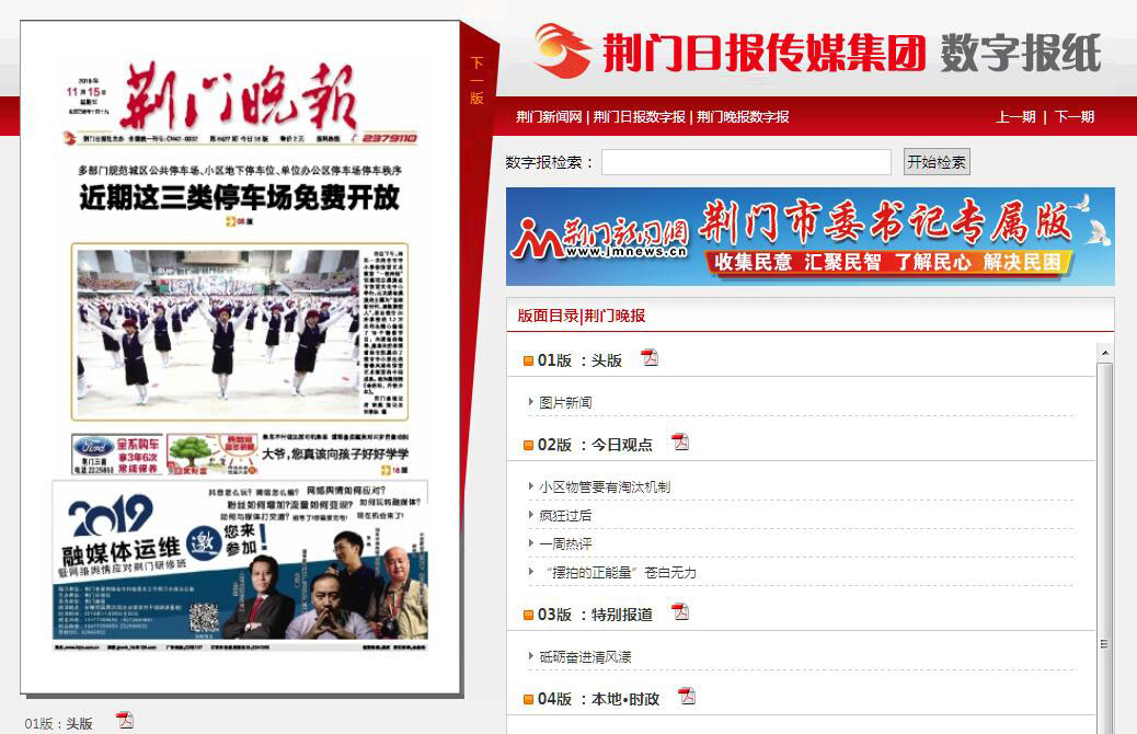 | 網(wǎng)站簡介: 荊門晚報電子版,荊門新聞網(wǎng)在線讀報平臺,荊門日報傳媒集團(tuán)數(shù)字報紙。 |