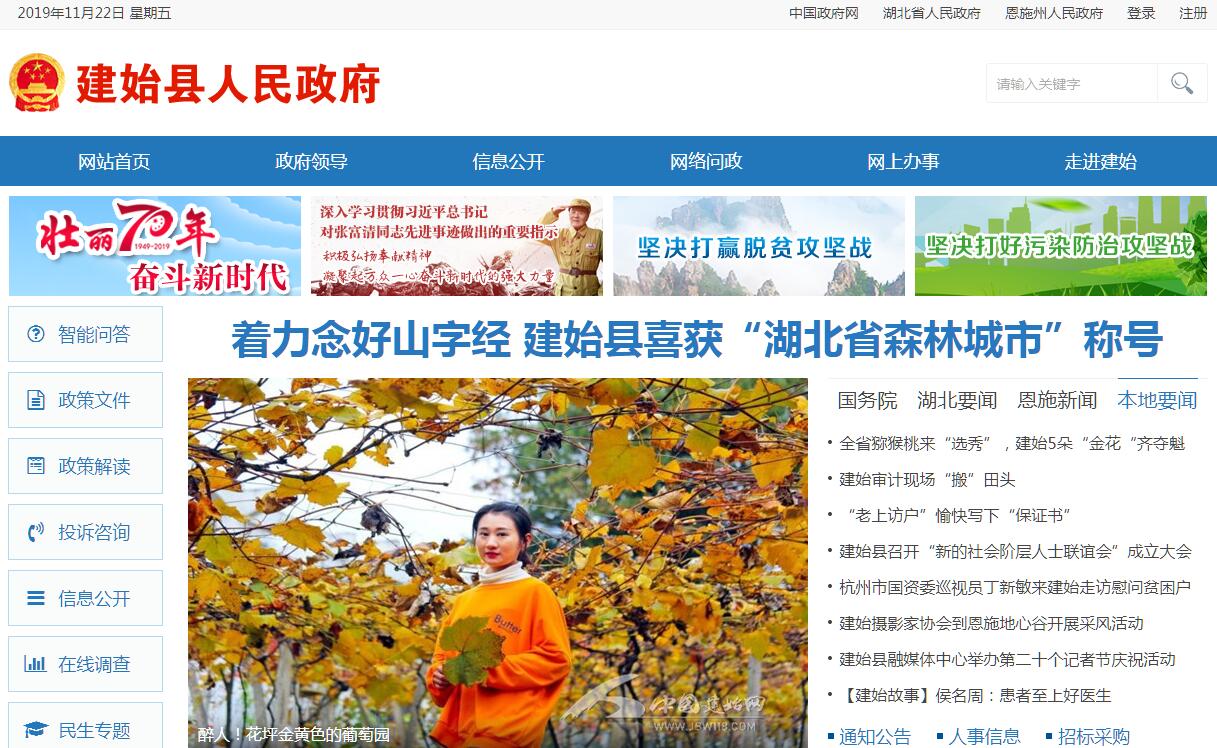 建始縣系湖北省恩施土家族苗族自治州(以下簡(jiǎn)稱“恩施州”)所轄8個(gè)縣(市)之一。下轄7鎮(zhèn)3鄉(xiāng)410個(gè)村(社區(qū)),2016年末總戶數(shù)170885戶,51.46萬人,其中農(nóng)業(yè)人口45.8萬人,土家族、苗族等少數(shù)民族人口占36.3%??h域國(guó)土面積2666.55平方千米、耕地面積4.68萬公頃、森林面積243萬畝。平均海拔1152米,最高海拔2090米,最低海拔287米,年均氣溫13.1攝氏度,年均降雨量1600毫米。縣城業(yè)州鎮(zhèn)位于縣境北部偏西的一個(gè)山區(qū)小盆地中,距省會(huì)武漢市607千米,距恩施機(jī)場(chǎng)59千米。318國(guó)道和209國(guó)道、宜萬鐵路、滬渝高速公路、清江黃金水道,以及正在建設(shè)的銀百高速貫穿縣境。 建始縣歷史悠久,建縣于西晉初269年,分巫縣而置;同時(shí),新設(shè)建平都尉統(tǒng)領(lǐng)建始等四縣,距今已有1748年。縣名來源于“皇帝年號(hào)”,歷史上共有6個(gè)皇帝將他們的年號(hào)命名為“建始”,最早的是公元前32年到公元前28年2月,西漢漢成帝劉驁將他的第一個(gè)年號(hào)取名為建始。正因?yàn)椤敖ㄊ肌弊鳛榛实勰晏?hào)且包含著吉祥美好、興旺發(fā)達(dá)之寓意,所以也就一直沿用至今。建始縣位于湖北南邊陲、武陵山腹地,東連巴東縣,以野三河為界;西接恩施市,以太陽河為界;南鄰鶴峰縣,以長(zhǎng)河、茶寮河為界;北與重慶市奉節(jié)、巫山兩縣接壤。縣域版圖形似蘑菇,南北長(zhǎng)89千米,東西最寬64.5于米,最窄12.5千米。建始地處神秘的北緯30度,即北緯30°06'~30°54',東經(jīng)109°32'~110°12',生態(tài)優(yōu)良,資源富集,素有“金建始”美譽(yù)。境內(nèi)植被繁茂,森林覆蓋率達(dá)66.32%,是中國(guó)南方最大的曰本落葉松生產(chǎn)和科研基地縣、“華中藥庫(kù)”地道藥材主產(chǎn)區(qū)之一。位于鄂西生態(tài)文化旅游圈核心旅游板塊,有全國(guó)罕見的原生態(tài)河谷野三河、八百里清江畫廊最美河段景陽河、巴鹽古道石門河等,是理想居住地和休閑渡假圣地;現(xiàn)已經(jīng)建成野三峽旅游區(qū)、石門古風(fēng)旅游區(qū)、朝陽觀景區(qū)、龍五淌旅游休閑度假區(qū)等景區(qū)。地處國(guó)內(nèi)連片面積最大的富硒生物圈,魔芋雙歧因子、獼猴桃果酒、關(guān)口葡萄、景陽雞、馬坡茶、稀世寶礦泉水等富硒特色產(chǎn)品遠(yuǎn)負(fù)盛名。