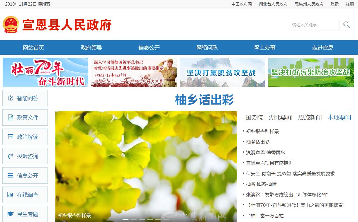 宣恩,于清朝設(shè)縣治。雍正十三年(1735)農(nóng)歷十一月壬寅日(12月10日),兵部和吏部據(jù)湖廣總督邁柱疏呈合議,獲乾隆恩準(zhǔn),定名宣恩,寓意“宣示浩蕩皇恩”。以施南、東鄉(xiāng)、忠建、高羅、忠峒、木冊六土司地外加石虎里地域益之,第一任知縣陳寀于乾隆元年勘邊界定疆域,以施南土司故基置縣署。宣恩,地處湖北省西南邊陲,北緯30°黃金分割線穿境而過,境內(nèi)自然資源富集、山水風(fēng)光秀麗、民族風(fēng)情濃郁。全縣國土面積2737平方公里,轄5鎮(zhèn)4鄉(xiāng)、279個村、5個城市社區(qū)和1個國家級自然保護(hù)區(qū)(七姊妹山)、1個省級工業(yè)園區(qū),總?cè)丝?6.2萬人,其中少數(shù)民族人口占66.6%。宣恩是山區(qū)農(nóng)業(yè)縣?!鞍松揭凰环痔铩笔菍π鞯孛驳男蜗髮懻?,800米以上的山地占70%以上。宣恩是民族文化藝術(shù)之鄉(xiāng)。“宣恩薅草鑼鼓”、“宣恩三棒鼓”入選國家級非物質(zhì)文化遺產(chǎn)保護(hù)名錄,彭家寨、慶陽涼亭古街被命名為“中國歷史文化名村”,“小茅坡營”有湖北省唯一保留完整的苗語苗俗文化。宣恩是特色村寨集中地。彭家寨吊腳樓群被中國古建筑專家張良皋先生盛贊為湖北省吊腳樓群的“頭號種子選手”,“茶馬古道”慶陽壩涼亭古街,“人間秘境、水墨侗鄉(xiāng)”野椒園古侗寨、美麗苗鄉(xiāng)譚家壩、“千戶土家”水田壩、茶旅融合伍家臺,村村寨寨是景點。宣恩是革命老區(qū)。國內(nèi)革命戰(zhàn)爭時期,賀龍元帥帶領(lǐng)工農(nóng)紅軍轉(zhuǎn)戰(zhàn)宣恩八年之久,創(chuàng)建湘鄂邊、湘鄂川黔革命根據(jù)地,板栗園大捷載入《中國工農(nóng)紅軍第二方面軍戰(zhàn)史》;全縣共有3000多人為中國革命捐軀。宣恩是資源富集區(qū)。享有中國貢品之鄉(xiāng)、中國白柚之鄉(xiāng)等美譽;天然氣儲量近千億立方米;水能資源理論蘊藏量達(dá)60萬千瓦,其中可開發(fā)量45萬千瓦;森林覆蓋率57.3%,林木綠化率72.4%,負(fù)氧離子濃度經(jīng)監(jiān)測最高值可達(dá)24000個/cm3,平均空氣質(zhì)量優(yōu)良天數(shù)達(dá)340天以上,是天然的大氧吧和避暑勝地。