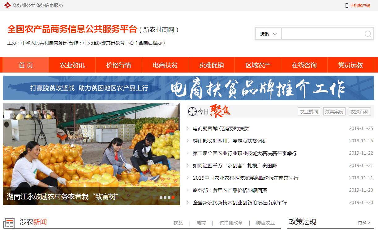 | 網(wǎng)站簡(jiǎn)介: 全國(guó)農(nóng)產(chǎn)品商務(wù)信息公共服務(wù)平臺(tái)(新農(nóng)村商網(wǎng))由中華人民共和國(guó)商務(wù)部主辦。 |