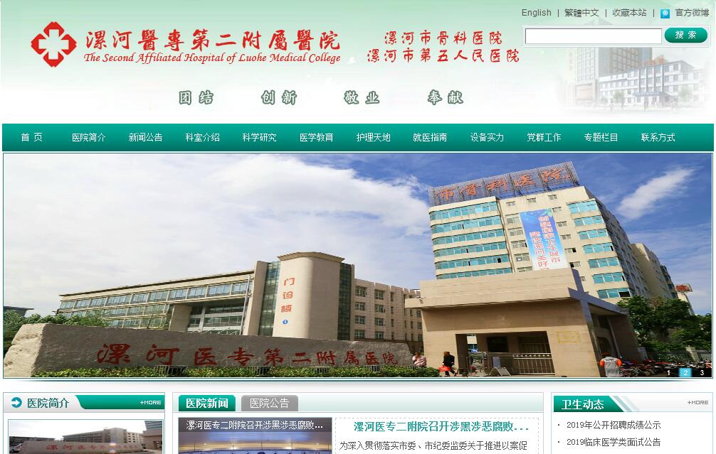 漯河醫(yī)學(xué)高等??茖W(xué)校第二附屬醫(yī)院(漯河市骨科醫(yī)院、漯河市第五人民醫(yī)院)始建于1949年,現(xiàn)已發(fā)展成為集醫(yī)療、教學(xué)、科研、預(yù)防、康復(fù)于一體的國家三級(jí)綜合醫(yī)院。醫(yī)院現(xiàn)有高級(jí)專業(yè)技術(shù)人員131名,教授、副教授56人、碩士研究生60人。醫(yī)院編制床位1200張,設(shè)有骨科、內(nèi)科、外科、婦科、產(chǎn)科、兒科、急診科、五官科、中醫(yī)科、康復(fù)科、介入科等25個(gè)臨床科室和核磁共振(MRI)、螺旋CT、數(shù)字化X線片(DR)、數(shù)字減影血管造影技術(shù)(DSA)、彩超、病理、腔鏡中心等19個(gè)醫(yī)技科室。骨科作為河南省醫(yī)學(xué)重點(diǎn)培育學(xué)科、漯河市重點(diǎn)???,是全省綜合醫(yī)院中規(guī)模較大、分科較細(xì)、技術(shù)力量雄厚的特色???,技術(shù)水平在全國同級(jí)綜合醫(yī)院中名列前茅,是我院的龍頭科室,目前開設(shè)8個(gè)病區(qū),9個(gè)專業(yè)組,分設(shè)脊柱、關(guān)節(jié)、創(chuàng)傷、骨腫瘤、顯微外科、矯形、骨內(nèi)科、小兒骨科、足踝外科等專業(yè)組。脊柱側(cè)彎矯正術(shù),上頸椎手術(shù),高選擇性神經(jīng)后根節(jié)段切除術(shù),各種人工關(guān)節(jié)置換術(shù)、成形術(shù),復(fù)雜骨盆髖臼骨折內(nèi)腔術(shù),前臂移位手指再造,四肢、脊柱同步矯正術(shù)等一大批高精尖手術(shù)成為業(yè)內(nèi)的“代表作品”。隨著患者需求的增加和疾病譜系的改變,醫(yī)院骨科學(xué)科發(fā)展布局和專家醫(yī)師團(tuán)隊(duì)的培養(yǎng)也正朝著精細(xì)化、專業(yè)化不斷進(jìn)取,有序推進(jìn)精準(zhǔn)化醫(yī)療建設(shè),積極打造享譽(yù)中原、名揚(yáng)全國的骨科??泼?。神經(jīng)內(nèi)科和普外科是漯河市重點(diǎn)專科,胸外科和麻醉科是漯河市特色???,心血管內(nèi)科是醫(yī)院重點(diǎn)培育???。目前,醫(yī)院已建成卒中中心和胸痛中心,成功開展了腦出血顱內(nèi)血腫微創(chuàng)清除,腦血管造影術(shù),腦血管病介入治療術(shù)和心臟支架植入術(shù),心臟消融手術(shù),急性冠心病介入治療等,使一大批心腦血管病患者得到康復(fù)。通過大力實(shí)施人才“走出去、引進(jìn)來”戰(zhàn)略,漯河醫(yī)專二附院將各學(xué)科業(yè)務(wù)技術(shù)交流不斷拓展到北京、上海、香港、臺(tái)灣和德國、法國、日本等國內(nèi)外頂尖醫(yī)療機(jī)構(gòu),進(jìn)一步增強(qiáng)了技術(shù)實(shí)力。醫(yī)院近年來在SCI期刊、中華級(jí)系列期刊、北大中文核心期刊發(fā)表論文百余篇,榮獲省級(jí)科研成果多項(xiàng)。醫(yī)療專家多次在國家級(jí)學(xué)術(shù)會(huì)議上進(jìn)行演講,在國家級(jí)平臺(tái)上發(fā)出了強(qiáng)有力的聲音。醫(yī)院重視文化建設(shè),職工精神風(fēng)貌積極向上。醫(yī)院培養(yǎng)內(nèi)訓(xùn)師長期對(duì)職工進(jìn)行人文素質(zhì)培訓(xùn),組織職工學(xué)習(xí)傳統(tǒng)文化,恪守“團(tuán)結(jié)、創(chuàng)新、敬業(yè)、奉獻(xiàn)”的醫(yī)院精神,秉承“患者利益至上”的理念,使醫(yī)院朝著更具文化內(nèi)涵、更能體現(xiàn)人文關(guān)懷的方向發(fā)展。醫(yī)院先后獲得“全國百姓放心示范醫(yī)院”、“國家愛嬰醫(yī)院”、“河南省文明單位”、“河南省衛(wèi)生先進(jìn)單位”、“河南省健康促進(jìn)示范醫(yī)院”等榮譽(yù)稱號(hào)。