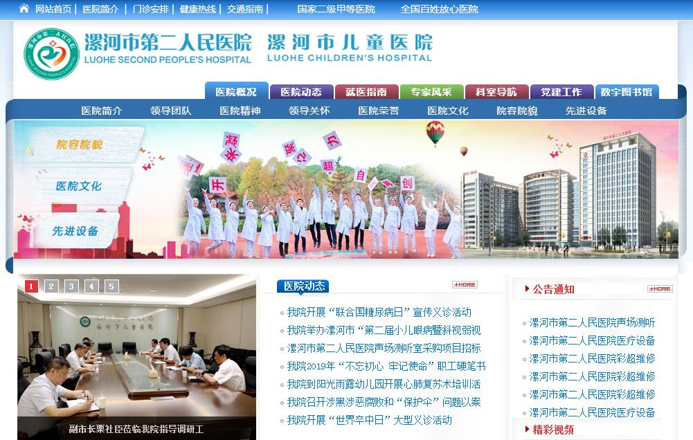 漯河市第二人民醫(yī)院始建于1956年,是一所集醫(yī)療、科研、教學、預防、康復為一體的國家城市二級甲等醫(yī)院。根據(jù)漯河市區(qū)域衛(wèi)生規(guī)劃,2011年1月經(jīng)河南省衛(wèi)生廳批準,加掛漯河市兒童醫(yī)院牌子。醫(yī)院是河南省人民醫(yī)院協(xié)作醫(yī)院,鄭大一附院、鄭大三附院、鄭大五附院、鄭州市兒童醫(yī)院合作單位,2015年5月加入“北京兒童醫(yī)院集團、鄭州市兒童醫(yī)院醫(yī)療聯(lián)合體”,2016年4月,成立漯河市兒童急救中心,5月31日,漯河市急救中心正式掛牌成立!至2016年8月,建筑面積58376平方米的新門診、病房樓建成并投入使用,總建筑面積達75000平方米,徹底改變了醫(yī)院的面貌和基本條件,一個環(huán)境優(yōu)美、設施齊全、功能完善的現(xiàn)代化綜合醫(yī)院展現(xiàn)在人們面前。醫(yī)院現(xiàn)有在職職工近800人,其中高級職稱83人,中級職稱190人;有40個臨床醫(yī)技科室,18個病區(qū),可開放床位995張。醫(yī)院現(xiàn)有市級以上重點專科和特色???個,其中顯微手足外科、兒科為河南省醫(yī)學重點培育學科、市醫(yī)學重點???;肝膽外科、婦產(chǎn)科為市醫(yī)學重點專科,神經(jīng)內(nèi)科、皮膚科、口腔科為市醫(yī)學特色???;中醫(yī)針灸科、小兒康復科為市中醫(yī)類重點???。醫(yī)院擁有飛利浦128層螺旋CT、飛利浦1.5T磁共振、美國產(chǎn)多排螺旋CT、西門子血管造影系統(tǒng)(DSA)、飛利浦雙板DR、德國史托斯牌電視腹腔鏡、德國費森尤斯血液透析機、數(shù)字胃腸機、瑞士哈美頓呼吸機、飛利浦四維彩色超聲儀、新生兒聽力篩查儀、聽覺誘發(fā)電位儀、射頻消融治療儀等國際先進大型醫(yī)療設備200多臺(件); 成功開展了斷肢再植、皮瓣轉(zhuǎn)移、髖關節(jié)膝關節(jié)置換、腹主動脈瘤切除、人造血管移植、腎上腺嗜鉻細胞瘤切除、肝腫瘤半肝切除、腹腔鏡各種手術、單卵低體重四胞胎的成功救治等一大批填補漯河市空白、省內(nèi)領先的新技術、新項目,近年來共發(fā)表論文500余篇,其中核心期刊100余篇,出版專著20余部,獲省、市科研成果100余項。醫(yī)院先后榮獲全國民主管理先進單位、全國十佳百姓放心醫(yī)院、河南省醫(yī)院管理年活動綜合評價先進單位、河南省衛(wèi)生先進單位、市文明單位等多項榮譽。多次被評為市新農(nóng)合、市醫(yī)保管理先進單位等。醫(yī)院計劃通過5年的努力,加快人才隊伍建設,加強重點??频慕ㄔO,完善多元化醫(yī)療服務模式,將醫(yī)院建設成為管理規(guī)范、布局合理、設施完善、功能齊全、技術精湛、服務優(yōu)良的現(xiàn)代化醫(yī)院,發(fā)展成為綜合型的三級甲等醫(yī)院,打造漯河市兒童醫(yī)院名片,成為豫中南地區(qū)具有領先水平的區(qū)域性醫(yī)療衛(wèi)生中心,更好地為全市及周邊地區(qū)人民群眾提供健康服務。