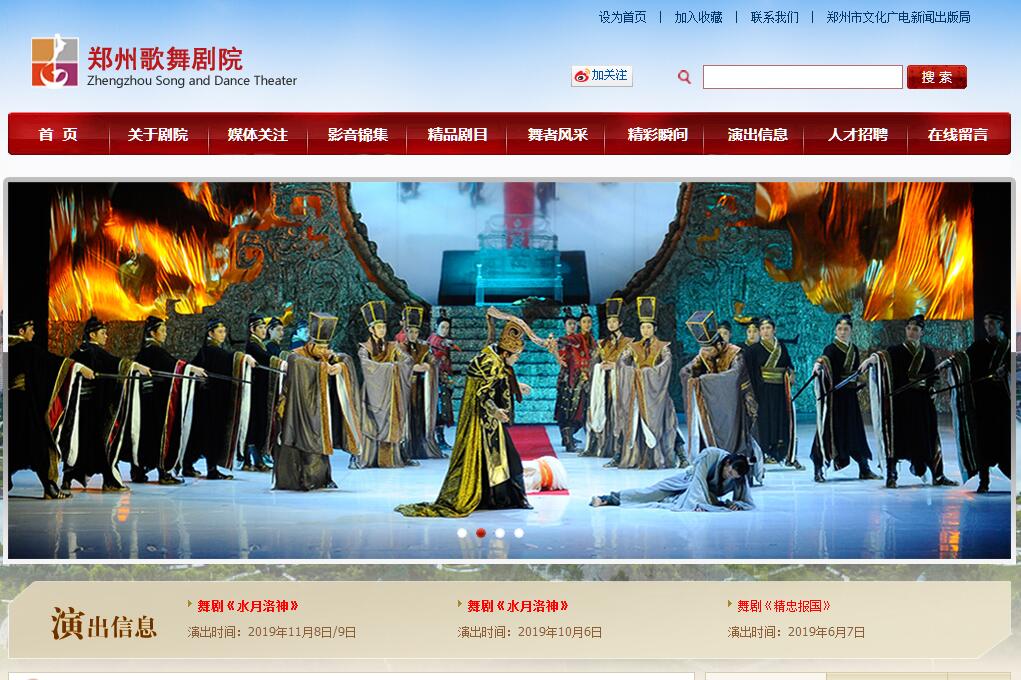 鄭州歌舞劇院成立于2004年3月,是一個在文化產(chǎn)業(yè)浪潮中誕生的專業(yè)藝術(shù)創(chuàng)作及表演團體。以“追求經(jīng)典,創(chuàng)造美麗。”為理念,以“在中國最古老的文明古都,創(chuàng)建最具活力的歌舞劇院;在民族最豐厚的文化沃土,打造百年吟唱的經(jīng)典歌舞;”為宗旨,堅持以創(chuàng)作一流的劇本、演出一流的劇目、培養(yǎng)一流的人才、建設(shè)一流的藝術(shù)團體為發(fā)展目標。作為鄭州市文化廣電新聞出版局的直屬文化事業(yè)單位,政府的強力支持是她走向成功的堅強后盾,靈活的機制、規(guī)范的管理和市場化運作是她不斷超越的動力。建院至今,它以打造中國經(jīng)典民族舞劇《風(fēng)中少林》為起點,以潑灑《水月洛神》的浪漫傳奇為飛躍,在努力實現(xiàn)“中國最具活力的藝術(shù)團體”的目標過程中,編織出最精美、最具時代特色的藝術(shù)畫卷,傳承著中華民族生生不息的藝術(shù)血脈。作為政府專業(yè)藝術(shù)院團,鄭州歌舞劇院在2004年成立之初,即推出了大型原創(chuàng)舞劇《風(fēng)中少林》。這部舞劇以精湛的藝術(shù)成就,先后榮獲第五屆中國舞蹈“荷花獎”舞劇、舞蹈詩作品金獎、2005—2006年國家舞臺藝術(shù)精品工程“十大精品劇目”、中宣部第十屆精神文明建設(shè)“五個一工程”優(yōu)秀戲劇獎、文化部第十二屆“文華獎”劇目獎。2010年12月,全新演繹的大型舞劇《水月洛神》,一經(jīng)推出即以其高超的藝術(shù)性、濃郁的民族性、深邃的思想性獲得社會各界的一致好評,并先后獲得第十二屆河南省戲劇大賽河南文華大獎、河南省第九屆精神文明建設(shè)“五個一工程”優(yōu)秀作品獎、第八屆中國舞蹈“荷花獎”舞劇、舞蹈詩作品金獎、中宣部第十二屆精神文明建設(shè)“五個一工程”優(yōu)秀作品獎、2011-2012國家舞臺藝術(shù)精品工程年度資助劇目。2012年11月,由鄭州歌舞劇院表演的舞蹈《我們在黃河岸邊》獲第八屆中國舞蹈“荷花獎”當代舞組作品金獎。
