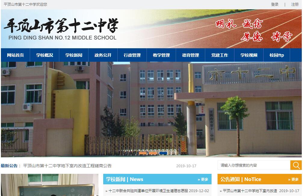平頂山市第十二中學(xué)建校于1956年,是市教育體育局直屬的一所初級(jí)中學(xué),座落在市區(qū)凌云路和平安大道交匯處〔平頂山市新華區(qū)西市場四站街2號(hào)〕。學(xué)校占地面積16650平方米,學(xué)校現(xiàn)有18個(gè)教學(xué)班,在校學(xué)生近千人。學(xué)校把"明禮、誠信、厚德、博學(xué)”作為校訓(xùn),以“敬業(yè)、愛生、博學(xué)、嚴(yán)謹(jǐn)”為教風(fēng),以“勤奮、守紀(jì)、樂學(xué)、善思”為學(xué)風(fēng),秉承“為學(xué)校的可持續(xù)發(fā)展創(chuàng)造條件、為學(xué)生的終生發(fā)展奠定基礎(chǔ)”辦學(xué)理念,推進(jìn)新課程改革,實(shí)施素質(zhì)教育。學(xué)?,F(xiàn)有專任教師85人,其中高級(jí)教師26人,中級(jí)教師38人;專任教師中研究生學(xué)歷的12人,本科以上學(xué)歷的76人。近年來,學(xué)校通過多種途徑強(qiáng)化教師的課堂教學(xué)能力和人文素養(yǎng)的提升,教師整體素質(zhì)結(jié)構(gòu)得到改善。目前學(xué)校已基本形成了國家、省、市、校四級(jí)骨干教師梯隊(duì),省市級(jí)骨干教師20人,省市級(jí)名師3人。學(xué)校每個(gè)教室都有現(xiàn)代化的多媒體教學(xué)設(shè)備,全部安裝了冷暖空調(diào);綜合樓配備有標(biāo)準(zhǔn)的物理、化學(xué)、生物實(shí)驗(yàn)室、全自動(dòng)錄播教室、計(jì)算機(jī)教室,美、音、形體特長室;圖書室、閱覽室、電子閱覽室為學(xué)生查閱資料提供方便;寬敞明亮的餐廳為學(xué)生就餐提供安全可口的午餐;現(xiàn)代化的運(yùn)動(dòng)場地整飾一新;整個(gè)校園干凈整潔、賞心悅目,經(jīng)過60多年的文化積淀,學(xué)校形成了作風(fēng)扎實(shí)、民風(fēng)淳樸的人文文化。近年來,學(xué)校先后獲得省級(jí)衛(wèi)生先進(jìn)單位,廉政文化進(jìn)校園省級(jí)示范點(diǎn),市基礎(chǔ)教育先進(jìn)單位,平頂山市青少年法治教育基地,市級(jí)文明單位,市行風(fēng)建設(shè)先進(jìn)單位,市女職工建功立業(yè)標(biāo)兵崗,市級(jí)學(xué)校食堂管理工作先進(jìn)單位,市先進(jìn)基層黨組織,市電化教育工作先進(jìn)單位,市平安校園建設(shè)先進(jìn)單位,市教育思想宣傳工作先進(jìn)單位等榮譽(yù)稱號(hào)。學(xué)校教學(xué)質(zhì)量逐年攀升,升入省級(jí)示范性高中、市級(jí)示范性高中的畢業(yè)生人數(shù)逐年增加。平頂山市第十二中學(xué)正以嶄新的形象出現(xiàn)在全市人民面前,全體十二中人緊密團(tuán)結(jié)、齊心協(xié)力、昂首挺胸走在前進(jìn)的路上。