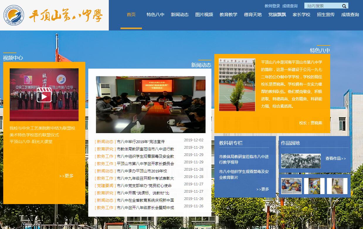 河南省平頂山市第八中學(xué)是平頂山市唯一一所完中,具有40年的辦學(xué)歷史。學(xué)校先后榮獲“全國優(yōu)秀家長學(xué)?!?、“河南省文明單位”、“平頂山市示范性高中”、“平頂山市示范性初中”等榮譽(yù)稱號,連續(xù)十四年被評為“平頂山市普通高中特長教育先進(jìn)單位”。學(xué)校堅(jiān)持走“初中高質(zhì)量,高中有特色”之路,履行“讓學(xué)生體驗(yàn)到學(xué)習(xí)的快樂,讓教師領(lǐng)略到教育的樂趣,讓家長享受到孩子成長的喜悅”的莊嚴(yán)承諾。 翻開畫冊,四十年的風(fēng)雨無阻,四十年的碩果芳華,四十年的歲月變遷,都如同劃過蓮葉的雨珠,歷經(jīng)滄桑后豐姿綽約的美,驕傲于世人。建構(gòu)優(yōu)美的育人環(huán)境,營造濃郁的校園文化,給學(xué)生一個純凈的心靈家園,讓學(xué)生生活舒暢;塑造和諧的師生關(guān)系,搭建智慧的個性舞臺,讓學(xué)生學(xué)習(xí)快樂;享受學(xué)習(xí)的溫馨,體驗(yàn)教育的幸福,是我們對學(xué)生的鄭重承諾。灑下園丁千滴汗,澆得滿園春色濃。我校高中畢業(yè)生陳文楠、楊蓓蓓、高宇靖、張哲、張波、劉宇靖、李蕓、李彥等考入清華大學(xué)、中國美院、北京體育學(xué)院、復(fù)旦大學(xué)等全國重點(diǎn)大學(xué),贏得了良好的社會聲譽(yù)。今天的八中,在社會各界的鼎力支持下,以鮮明的辦學(xué)特色、優(yōu)異的高考成績,贏得了學(xué)生的熱愛、家長的信任和社會的贊譽(yù)。