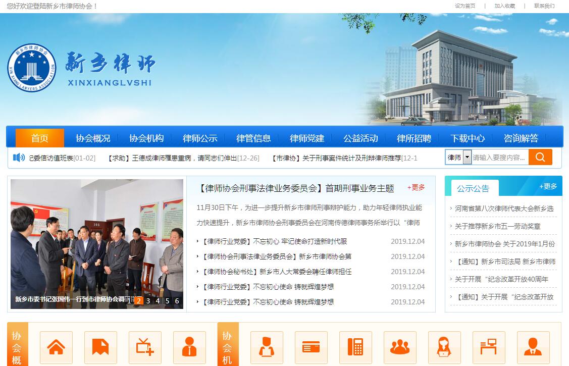 新鄉(xiāng)律師網(wǎng)由新鄉(xiāng)市律師協(xié)會(huì)主辦。新鄉(xiāng)市律師協(xié)會(huì)是由新鄉(xiāng)市全體律師和律師事務(wù)所組成的社會(huì)團(tuán)體法人,是新鄉(xiāng)市律師的自律性組織,依法對本市及縣(市區(qū))律師和律師事務(wù)所施行行業(yè)管理。新鄉(xiāng)市律師協(xié)會(huì)會(huì)員分為團(tuán)體會(huì)員和個(gè)人會(huì)員。經(jīng)河南省司法廳批準(zhǔn)設(shè)立的律師事務(wù)所、律師事務(wù)所分所是本會(huì)的團(tuán)體會(huì)員;經(jīng)河南省司法廳審核批準(zhǔn)并頒發(fā)律師執(zhí)業(yè)證的律師是本會(huì)的個(gè)人會(huì)員。新鄉(xiāng)市律師協(xié)會(huì)會(huì)員同時(shí)擁有河南省律師協(xié)會(huì)會(huì)員、中華律師協(xié)會(huì)會(huì)員資格。通過團(tuán)體會(huì)員申請執(zhí)業(yè)的實(shí)習(xí)人員,為律師協(xié)會(huì)的預(yù)備會(huì)員,接受律師協(xié)會(huì)的管理。新鄉(xiāng)律師隊(duì)伍是一支講政治、顧大局,講誠信、有原則,講信仰、有紀(jì)律,講奉獻(xiàn)、有擔(dān)當(dāng)?shù)闹袊厣鐣?huì)主義法治建設(shè)的重要組成部分,是法治新鄉(xiāng)建設(shè)的重要力量。截止到2019年2月21日,新鄉(xiāng)市律師協(xié)會(huì)共有67個(gè)律師事務(wù)所,952名專職律師。