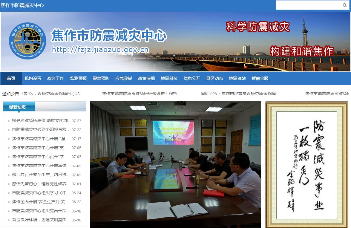 焦作市地震局成立于一九七五年二月,現(xiàn)為焦作市人民政府直屬正縣級(jí)事業(yè)單位,人員編制 12 名,內(nèi)設(shè)監(jiān)測(cè)管理科、震害防御科和辦公室;下設(shè)二級(jí)機(jī)構(gòu)焦作市地震臺(tái)。其主要職責(zé)是:1、貫徹執(zhí)行國(guó)家、省關(guān)于防震減災(zāi)的法律、法規(guī)和方針政策,監(jiān)督、檢查本市行政區(qū)域內(nèi)的防震減災(zāi)工作;起草地方性法規(guī)、規(guī)章,制定規(guī)范性文件,并組織實(shí)施和檢查。2、組織編制本行政區(qū)域的防震減災(zāi)規(guī)劃和計(jì)劃。3、負(fù)責(zé)對(duì)本地區(qū)地震活動(dòng)與地震前兆的信息檢測(cè)、傳遞、分析、處理,提出本地區(qū)地震趨勢(shì)分析意見。4、負(fù)責(zé)管理地震臺(tái)站及群測(cè)群防點(diǎn)的日常監(jiān)測(cè)工作,制定短期的臨震預(yù)報(bào)方案,建立震情跟蹤會(huì)商制度,提高地震監(jiān)測(cè)預(yù)報(bào)能力。5、負(fù)責(zé)依法保護(hù)地震監(jiān)測(cè)設(shè)施和地震觀測(cè)環(huán)境,并對(duì)違法行為進(jìn)行行政處罰。6、負(fù)責(zé)管理本轄區(qū)建設(shè)工程的地震安全性評(píng)價(jià)工作,并審批抗震設(shè)防要求。7、負(fù)責(zé)對(duì)從事地震安全性評(píng)價(jià)工作的單位進(jìn)行資格審查和監(jiān)督管理。8、負(fù)責(zé)對(duì)違反有關(guān)防震減災(zāi)法律、法規(guī)的違法行為進(jìn)行行政處罰。9、承擔(dān)本行政區(qū)域內(nèi)的地震行政復(fù)議、行政訴訟工作;負(fù)責(zé)地震行業(yè)質(zhì)量與技術(shù)監(jiān)督管理工作;負(fù)責(zé)地震技術(shù)標(biāo)準(zhǔn)的宣傳、貫徹、實(shí)施和執(zhí)行監(jiān)督;管理地震計(jì)量工作。10、負(fù)責(zé)會(huì)同有關(guān)部門編制防震減災(zāi)規(guī)劃,開展震害預(yù)測(cè)工作。11、負(fù)責(zé)會(huì)同有關(guān)部門制定本區(qū)域破壞性地震應(yīng)急預(yù)案、綜合防御措施,并組織實(shí)施和檢查。12、負(fù)責(zé)對(duì)全市有關(guān)部門、縣(市)區(qū)的破壞性地震應(yīng)急預(yù)案進(jìn)行備案管理。13、承擔(dān)市人民政府抗震救災(zāi)指揮機(jī)構(gòu)的辦事機(jī)構(gòu)的職能;負(fù)責(zé)震情和災(zāi)情速報(bào),會(huì)同有關(guān)部門組織地震災(zāi)害調(diào)查與損失評(píng)估;參與制定地震災(zāi)區(qū)重建規(guī)劃。14、會(huì)同有關(guān)部門建立地震緊急救援工作體系。開展工作地震應(yīng)急、救援技術(shù)和裝備的研究與開發(fā);積極組建和培訓(xùn)地震緊急救援隊(duì)伍;協(xié)助有關(guān)部門建立地震應(yīng)急救援物資儲(chǔ)備系統(tǒng)。15、負(fù)責(zé)轄區(qū)人工地震動(dòng)的監(jiān)測(cè)和危害鑒定工作。16、會(huì)同有關(guān)部門開展防震減災(zāi)宣傳教育工作,普及防震減災(zāi)知識(shí),提高全社會(huì)的減災(zāi)意識(shí)。