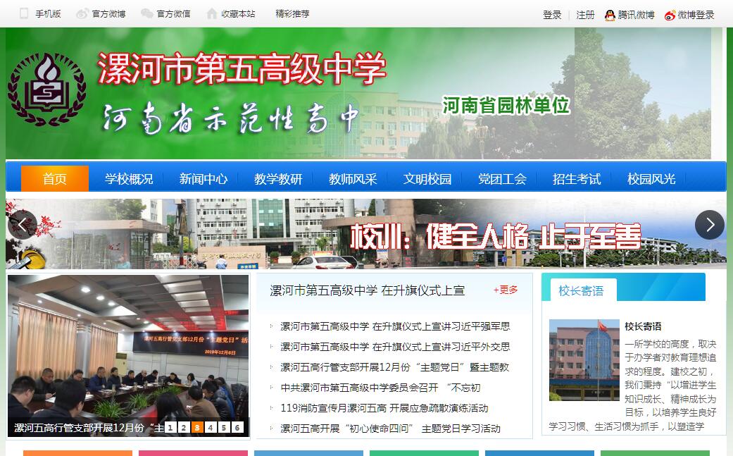 漯河五高是一所河南省示范性普通公辦高中,創(chuàng)建于1993年,原有南北兩個(gè)校區(qū),南校區(qū)位于漯河市海河路225號(hào),占地95畝,設(shè)初中部30班;北校區(qū)位于淞江路漯河市國(guó)際會(huì)展中心西鄰,學(xué)校占地約120畝,建筑面積約80000平方米,設(shè)高中部72班。2019年8月在市委政府的統(tǒng)一安排下,南校區(qū)初中部與原漯河市第十五中學(xué)合并為漯河市第二實(shí)驗(yàn)中學(xué),與五高分離。漯河五高現(xiàn)有教職工437人,在校生達(dá)5200多人。漯河五高師資力量雄厚,現(xiàn)有省教育教學(xué)專家2人,特級(jí)教師3人,正高級(jí)教師1人,副高級(jí)教師130多人,有46名教師被省、市命名為學(xué)科帶頭人,有68名教師被省、市命名為優(yōu)秀教師。辦學(xué)理念務(wù)實(shí),逐漸形成了“以增進(jìn)學(xué)生知識(shí)成長(zhǎng)、精神成長(zhǎng)為目標(biāo),以培養(yǎng)學(xué)生良好學(xué)習(xí)習(xí)慣、生活習(xí)慣為抓手,以塑造學(xué)生健全人格為目的,為學(xué)生一生的幸福奠基”的辦學(xué)理念和“在高度關(guān)注為高校輸送優(yōu)秀人才的同時(shí),高度關(guān)注學(xué)生的精神成長(zhǎng)和健全人格”的辦學(xué)特色。創(chuàng)建26年來(lái),學(xué)校為國(guó)家輸送了一批又一批的高素質(zhì)人才,先后有宋廣輝等30多名學(xué)生考入清華、北大。在重視培養(yǎng)拔尖人才的同時(shí),全面務(wù)實(shí)地推行素質(zhì)教育,培養(yǎng)學(xué)生健全的人格,關(guān)注學(xué)生的興趣個(gè)性,培養(yǎng)學(xué)生的愛(ài)好特長(zhǎng),關(guān)心學(xué)生身心健康,促進(jìn)學(xué)生的自主發(fā)展和全面成長(zhǎng),并取得豐碩成果。在河南省第二十屆青少年科技創(chuàng)新大賽中,史世超同學(xué)榮獲科技創(chuàng)新成果一等獎(jiǎng);于占江等12人分別獲省奧賽數(shù)、理、化、生學(xué)科一等獎(jiǎng);??缎轮瘛愤B續(xù)三年榮獲“全國(guó)中小學(xué)校??坏泉?jiǎng)”。學(xué)校開(kāi)展富有特色的心理輔導(dǎo)課,成績(jī)顯著,被授予“國(guó)家級(jí)心理輔導(dǎo)特色學(xué)?!睒s譽(yù)稱號(hào),教學(xué)上創(chuàng)建了“四學(xué)一測(cè)”互聯(lián)網(wǎng)+的特色教學(xué)模式,榮獲了“信息技術(shù)與學(xué)科整合示范?!狈Q號(hào)。漯河五高特別重視基層黨建工作,創(chuàng)建了“推進(jìn)陽(yáng)光志愿服務(wù),發(fā)揮先鋒模范作用”為特色的“一校一品”黨建品牌。漯河五高先后榮獲“河南省示范性高中” “全國(guó)貫徹《學(xué)校體育工作條例》優(yōu)秀學(xué)?!薄叭珖?guó)心理輔導(dǎo)特色學(xué)校”“河南省高中課程改革先進(jìn)單位”“河南省德育工作先進(jìn)集體”“河南省文化建設(shè)先進(jìn)單位”“河南省園林單位”“河南省衛(wèi)生先進(jìn)單位”“漯河市高中教學(xué)工作先進(jìn)單位”“漯河市學(xué)生家長(zhǎng)最滿意學(xué)?!?“漯河市首批家庭教育試點(diǎn)學(xué)?!钡?00多項(xiàng)榮譽(yù)稱號(hào)。漯河五高秉承著“健全人格 止于至善”的校訓(xùn),積極開(kāi)展“扣好人生第一??圩印绷?xiàng)主題教育實(shí)踐活動(dòng),為創(chuàng)建文明城市和文明校園加大投入,分別在教研樓、綜合樓、教學(xué)樓制作大幅社會(huì)主義核心價(jià)值觀,教育引導(dǎo)學(xué)生學(xué)習(xí)領(lǐng)悟。在校園內(nèi)外制作創(chuàng)建文明校園版面20多處,加大未成年人思想道德宣傳力度,在每個(gè)教室懸掛社會(huì)主義核心價(jià)值觀和中小學(xué)生守則,在每一個(gè)辦公室懸掛社會(huì)主義核心價(jià)值觀和中小學(xué)教師職業(yè)道德規(guī)范,大力開(kāi)展校園衛(wèi)生清潔和城市清潔志愿服務(wù)活動(dòng)。漯河五高將站在新的起點(diǎn)上,向著內(nèi)涵學(xué)校、品牌學(xué)校、特色學(xué)校的目標(biāo)闊步邁進(jìn)!