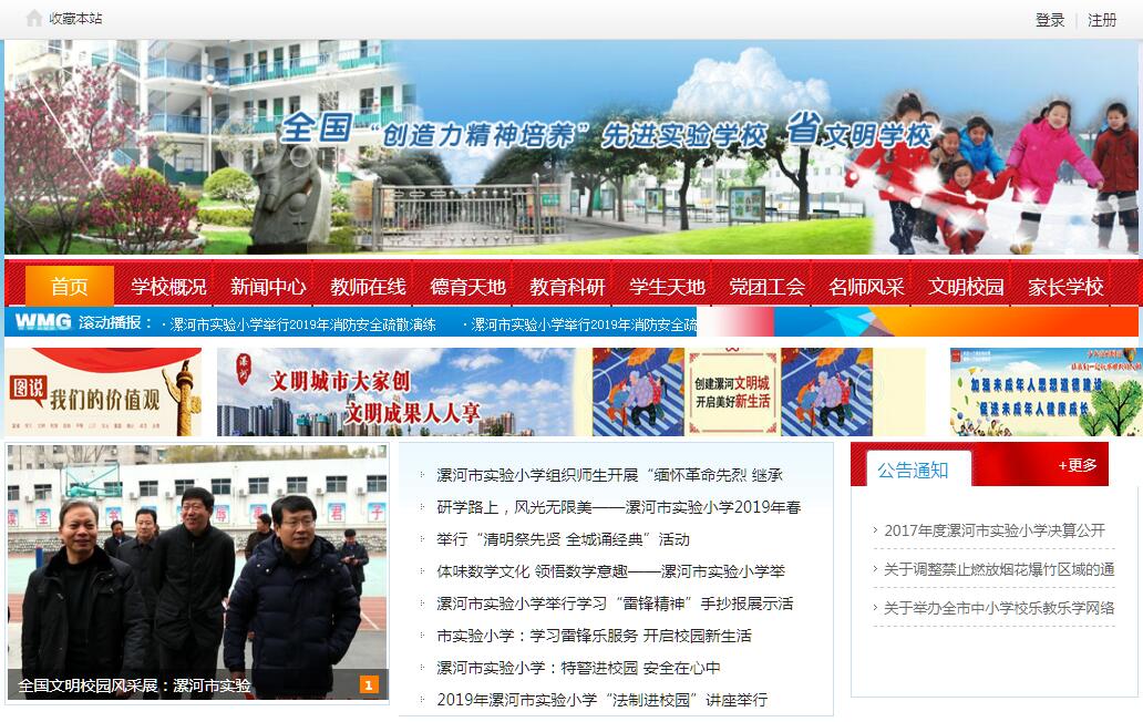 漯河市實(shí)驗(yàn)小學(xué)始建于1987年,是漯河市行政區(qū)劃為省轄市時(shí)興建的首所市直小學(xué),坐落于市行政中心和風(fēng)景秀麗的沙澧河畔。2016年市政府決策的民生實(shí)事中,將西城區(qū)新建小學(xué)劃歸市實(shí)驗(yàn)小學(xué)作為西城校區(qū),實(shí)施一體化辦學(xué)。學(xué)校的兩個(gè)校區(qū)擁有43個(gè)教學(xué)班,2550名學(xué)生,142名教師,其中校本部33個(gè)班,2115名學(xué)生,西校區(qū)10個(gè)班,435名學(xué)生。教職工學(xué)歷均為大專以上,中小學(xué)高級(jí)教師8人,中小學(xué)一級(jí)教師74人,本科學(xué)歷已達(dá)到74%。建校三十年來,經(jīng)過歷屆領(lǐng)導(dǎo)班子和全體師生的不懈努力,形成了良好校風(fēng)、教風(fēng)與學(xué)風(fēng),辦學(xué)特色凸顯,文化底蘊(yùn)深厚。特別是2002年學(xué)校進(jìn)入內(nèi)涵式發(fā)展新階段以來,緊緊圍繞立德樹人根本任務(wù),樹立“創(chuàng)辦特色卓越學(xué)?!眾^斗目標(biāo),堅(jiān)持“精細(xì)、高雅、和諧、創(chuàng)新”治校理念,扎實(shí)推進(jìn)“思想建校、作風(fēng)立校、制度治校、能力興校、學(xué)術(shù)強(qiáng)校”發(fā)展戰(zhàn)略,穩(wěn)步推動(dòng)學(xué)校由積累式發(fā)展走向轉(zhuǎn)型發(fā)展、由利益驅(qū)動(dòng)走向生命引領(lǐng)、由局部改進(jìn)走向整體變革,教育質(zhì)量與辦學(xué)水平極大提升,精神文明建設(shè)成果豐碩,社會(huì)影響力顯著增強(qiáng),成為沙澧大地一顆璀璨的教育明珠。學(xué)校占地面積23畝,建筑面積9800多平方米,運(yùn)動(dòng)場(chǎng)面積6300多平方米,綠化面積6100多平方米,綠化率占100%,環(huán)境優(yōu)美,怡情養(yǎng)性。校園里四季樹木蔥郁,綠草如茵,繁花似錦。綠樹紅花間,“起航”石、靜思亭、啟智廊、小夢(mèng)橋、踏夢(mèng)路精巧別致,富有詩(shī)意;月季、金桔、牡丹、百合、繡球次第開放,爭(zhēng)芳吐艷。徜徉在漯河市實(shí)驗(yàn)小學(xué)校園里,目之所及皆美景,駐足即可品文化,真謂是“每面墻壁會(huì)說話、一景一物皆育人”。近年來,學(xué)校先后榮獲全國(guó)文明校園、全國(guó)和諧校園先進(jìn)學(xué)校、全國(guó)經(jīng)典文化誦讀示范學(xué)校、全國(guó)青少年校園足球特色學(xué)校,省級(jí)文明單位、省教育系統(tǒng)先進(jìn)單位、省教育系統(tǒng)學(xué)雷鋒先進(jìn)單位、省中小學(xué)研學(xué)旅行實(shí)驗(yàn)校、省安全教育示范學(xué)校、省科技活動(dòng)特色學(xué)校、省義務(wù)教育裝備標(biāo)準(zhǔn)化實(shí)驗(yàn)學(xué)校、省思想政治工作先進(jìn)單位、省文明標(biāo)兵學(xué)校、省優(yōu)秀少先隊(duì)集體、省學(xué)校行風(fēng)建設(shè)先進(jìn)單位、省師德師風(fēng)建設(shè)先進(jìn)單位、省義務(wù)教育課程改革先進(jìn)單位、省平安校園、省依法治校示范校、省衛(wèi)生先進(jìn)單位、省園林式單位、省綠色學(xué)校、省首批語(yǔ)言文字規(guī)范化示范學(xué)校、省卓越家長(zhǎng)學(xué)校,市首批示范性小學(xué)、市無煙單位、市首屆最美校園、市五一勞動(dòng)獎(jiǎng)狀、市未成年人思想道德建設(shè)先進(jìn)單位等百余項(xiàng)集體榮譽(yù)。