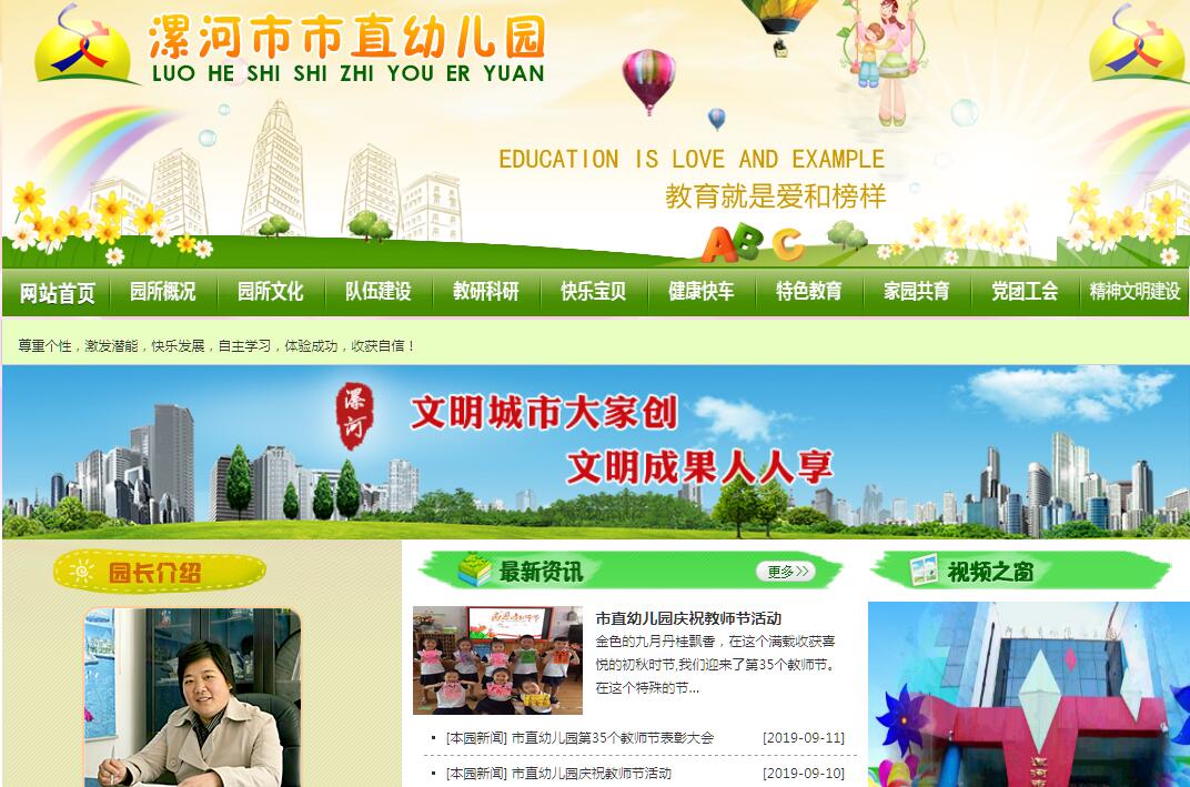 漯河市市直幼兒園1955年建園,是市教育局直屬的漯河市第一所全日制公辦幼兒園。1998年被省教委首批命名為“河南省示范幼兒園”。所處地理位置優(yōu)越,交通便利,東臨交通路,與人民公園一路之隔;西接雙匯文化廣場(chǎng),北與市實(shí)驗(yàn)高中為鄰,南臨建設(shè)路。現(xiàn)有110名教職工,750名幼兒。占地面積6400㎡,建筑面積10500㎡。園內(nèi)環(huán)境優(yōu)美,四季花香,綠樹成蔭,早在1995年就被漯河市政府授予“花園式單位”。園所建筑布局及幼兒活動(dòng)用房設(shè)計(jì)美觀,室內(nèi)教學(xué)用觸摸一體機(jī)、電腦網(wǎng)絡(luò)系統(tǒng)等高端現(xiàn)代化教學(xué)實(shí)施一應(yīng)俱全;區(qū)角設(shè)置科學(xué)合理,材料投放豐富適宜。室外多種富有兒童特點(diǎn)的大、中型綜合玩具和鉆、爬、走、跳等各種體育活動(dòng)器械及沙水玩具設(shè)施,滿足孩子體能鍛煉、動(dòng)作協(xié)調(diào)靈敏、創(chuàng)造性等多方面能力的發(fā)展。幼兒閱覽室、美術(shù)創(chuàng)意室、木工坊、烘焙坊等專用活動(dòng)室,豐富孩子學(xué)習(xí)生活場(chǎng)景,滿足孩子特長(zhǎng)興趣發(fā)展需要,為孩子插上快樂創(chuàng)意的翅膀。多年來我園高度重視教師隊(duì)伍整體素質(zhì)的提高。通過多種形式、多種途徑和方法促進(jìn)教師專業(yè)成長(zhǎng),致力于打造“溫馨和睦充滿愛心、勤學(xué)善教充滿智慧、競(jìng)爭(zhēng)合作充滿生機(jī)、積極向上充滿干勁”的優(yōu)秀教師團(tuán)隊(duì),取得了顯著成效。現(xiàn)有省學(xué)科帶頭人3人,河南省名師8人,省級(jí)骨干教師13人,漯河市教育專家1人,市級(jí)骨干教師5人。名師隊(duì)伍成為我園發(fā)展最大優(yōu)勢(shì)和最寶貴的資源。德高藝馨、厚學(xué)技精的精英教師群體,教育教學(xué)活動(dòng)中充分自己的聰明才智和嫻熟的技能技巧,尊重孩子,尊重規(guī)律,激發(fā)興趣,科學(xué)施教,促進(jìn)孩子身心和諧、全面健康發(fā)展。幼兒園禮儀文化特色教育活動(dòng)成效顯著,濃厚的文明禮儀、溫馨祥和、積極進(jìn)取、昂揚(yáng)向上的園所文化氛圍彰顯出無窮的魅力。先后榮獲“國家級(jí)巾幗文明示范崗”、“全國三八紅旗集體”、“河南省精神文明建設(shè)先進(jìn)單位”、“省級(jí)衛(wèi)生先進(jìn)單位”、“省食堂達(dá)標(biāo)管理A級(jí)單位”、“省級(jí)安全管理先進(jìn)單位”、“省青年文明號(hào)”、河南省五好團(tuán)支部、“河南省家庭教育工作先進(jìn)單位”、“市師德建設(shè)十佳單位”、“漯河市市經(jīng)典誦讀示范單位”、“漯河市雙合格家庭教育工作先進(jìn)單位”、“漯河市未成年思想道德建設(shè)先進(jìn)單位”、“漯河市兒童工作先進(jìn)單位”、“漯河市窗口幼兒園”等多項(xiàng)集體榮譽(yù)。昨天曾布滿鮮花,今天正蓄勢(shì)而發(fā)。承千古沙澧文化之底蘊(yùn),揚(yáng)六十年名園之風(fēng)采,我們繼續(xù)堅(jiān)持走內(nèi)涵發(fā)展的道路,不斷探索,大膽創(chuàng)新,以厚重的文化底蘊(yùn),努力把幼兒園建設(shè)成為幼兒健康成長(zhǎng)的家園、主動(dòng)學(xué)習(xí)的樂園、全面發(fā)展的百花園,讓歡樂的種子播撒進(jìn)每一個(gè)孩子的心田,讓自信和自豪升騰在每一個(gè)孩子心間,著力為孩子描繪人生最佳底色!