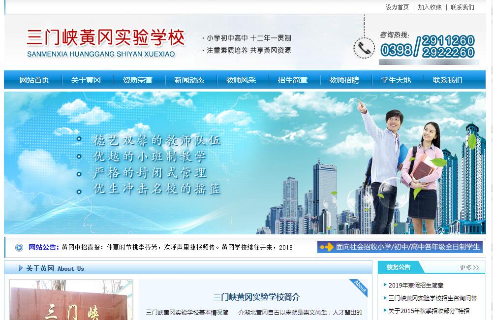 湖北黃岡自古以來就是崇文尚武,人才輩出的地方。畢升、李時珍、李四光、聞一多等歷史名人蜚聲中外,共和國兩位主席和四百多位開國將帥更是黃岡人的驕傲。黃岡的教育聞名遐邇,影響深遠。素有“高考狀元之鄉(xiāng)”、“奧賽金牌之鄉(xiāng)”之稱的黃岡市已被國家列為“全國中小學(xué)素質(zhì)教育實驗基地”。為了弘揚黃岡教育資源的優(yōu)勢,更好的服務(wù)于三門峽基礎(chǔ)教育,2008年6月三門峽市、區(qū)教育部門引進一批黃岡市知名教育專家、名師創(chuàng)辦了三門峽黃岡實驗學(xué)校。三門峽黃岡實驗學(xué)校是全市首家十二年一貫制、全封閉、全寄宿制的一所民辦學(xué)校。十年來,學(xué)校的辦學(xué)條件和辦學(xué)水平得到了市、區(qū)政府和教育部門以及廣大家長的充分肯定,先后被各級評為管理規(guī)范化先進學(xué)校、區(qū)級示范性學(xué)校和教育教學(xué)先進單位、三門峽市優(yōu)秀民辦學(xué)校、河南省優(yōu)秀民辦學(xué)校、河南省民辦教育協(xié)會理事單位。學(xué)校校址位于湖濱區(qū)會興街,地處黃河岸邊,毗鄰黃河公園,學(xué)校占地面積約45畝,建筑面積9000平方米,規(guī)范化的塑膠運動場地,建設(shè)投資660余萬元,學(xué)?,F(xiàn)有教職工53人,在校學(xué)生500余人。校園環(huán)境幽雅,交通便利。高標準配置的實驗室、微機室、多媒體教室、教室、宿舍、多功能餐廳、塑膠運動場地等教育教學(xué)設(shè)施一應(yīng)俱全,學(xué)習(xí)、住宿、餐飲一條龍服務(wù),全封閉、全寄宿制體現(xiàn)出軍事化管理的獨有特色。同時,高薪聘請的黃岡名師帶來的是全新的教育理念和獨特超前的管理模式,這里是學(xué)生們求學(xué)成才的樂園。