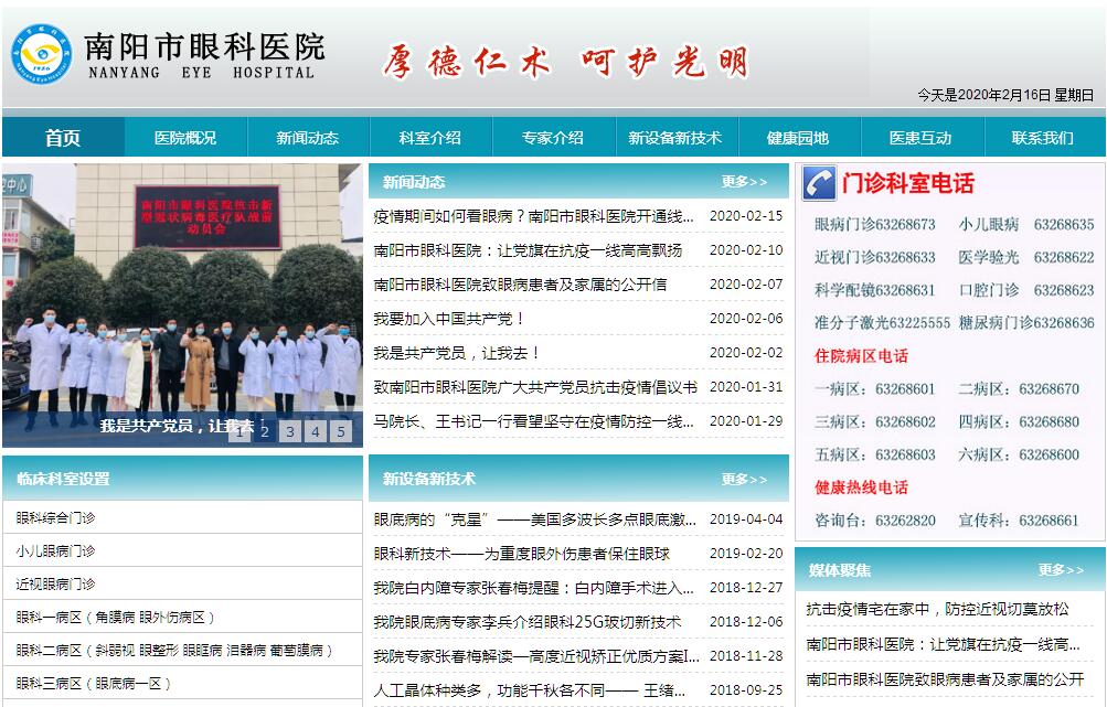 南陽市眼科醫(yī)院創(chuàng)建于1956年,是南陽市衛(wèi)計(jì)委直屬二級(jí)??漆t(yī)院,是全市職工醫(yī)保、城鄉(xiāng)居民醫(yī)保定點(diǎn)的公立眼病??漆t(yī)院。醫(yī)院位于南陽市市中心梅溪路與文化宮街交叉口。南陽市眼科醫(yī)院醫(yī)院成立60年來,經(jīng)過幾代眼科醫(yī)院人堅(jiān)持不懈的努力和社會(huì)各界大力支持,實(shí)現(xiàn)了人才、技術(shù)和設(shè)備的同步發(fā)展,目前已成為集眼科醫(yī)療、教學(xué)、科研于一體的,具有一定規(guī)模的現(xiàn)代化眼病專科醫(yī)院。其??菩?yīng)輻射到與南陽毗鄰的省、市、縣區(qū),是豫西南地區(qū)的眼科醫(yī)療、康復(fù)中心。醫(yī)院擁有醫(yī)術(shù)精湛、陣容強(qiáng)大的專家團(tuán)隊(duì),副高以上職稱的眼科專家42名,擁有當(dāng)今先進(jìn)的眼科診療設(shè)備200余臺(tái)(件)。如新一代鷹視“飛秒”U視全激光準(zhǔn)分子系統(tǒng)、美國(guó)產(chǎn)博士倫23G微創(chuàng)、高速玻璃體切割儀、博士倫白內(nèi)障微切口超聲乳化儀、波前像差儀,意大利產(chǎn)角膜地形圖儀、角膜測(cè)厚儀,角膜共聚焦顯微鏡、德國(guó)產(chǎn)OCT(眼用CT)、眼電生理儀,法國(guó)產(chǎn)眼底激光治療儀,日本產(chǎn)眼底熒光造影儀、超聲生物顯微鏡等。醫(yī)院設(shè)有一個(gè)眼病綜合門診,一個(gè)口腔病綜合門診,6個(gè)眼病??撇^(qū),6個(gè)眼病治療矯治中心,20個(gè)眼病專業(yè)學(xué)組。它們分別角膜病、眼外傷科(一病區(qū));眼眶病、斜視及整形美容科(二病區(qū));眼底病一科(三病區(qū));白內(nèi)障青光眼科(四病區(qū));白內(nèi)障科(五病區(qū));眼底病二科(六病區(qū));準(zhǔn)分子激光近視矯治中心;小兒眼病治療中心;視光學(xué)(醫(yī)學(xué)驗(yàn)光配鏡)中心。醫(yī)院實(shí)際開放床位400張,病房設(shè)施齊全、功能完備,能為病人提供滿意的住院醫(yī)療服務(wù)。醫(yī)院實(shí)行“人才興院、科技強(qiáng)院”的辦院宗旨和樹名醫(yī)、創(chuàng)名科、建名院的“三名戰(zhàn)略”。確定“科有特色、人有專長(zhǎng)、專中求強(qiáng)、強(qiáng)中求精”為發(fā)展目標(biāo)。對(duì)眼病的治療實(shí)行“專家、??啤2?、專治”原則,治療效果達(dá)到國(guó)內(nèi)同步的水平。要求各項(xiàng)診療技術(shù)不斷向“更高、更精”領(lǐng)域邁進(jìn)。目前白內(nèi)障科開展的微切口超聲乳化治療白內(nèi)障技術(shù),只需1.8毫米的切口,就可順利完成白內(nèi)障摘除和人工晶體植入手術(shù),以創(chuàng)傷輕、切口小,散光小、術(shù)后視力恢復(fù)快并且穩(wěn)定的特點(diǎn),是白內(nèi)障患者復(fù)明手術(shù)的選擇。眼底病科開展的玻璃體視網(wǎng)膜病變手術(shù),是南陽眼科界能夠自主開展該項(xiàng)手術(shù)的科室,該手術(shù)為許多玻璃體視網(wǎng)膜病變患者留住了寶貴的視力。青光眼科開展24小時(shí)眼壓測(cè)量和難治性青光眼的治療為病人扼住了“致盲殺手”。斜視上瞼下垂美容整形科的專家采用的矯治術(shù)式,在為患者改善外觀的同時(shí),也為他們重塑了自信。角膜病眼外傷科、小兒眼病中心、醫(yī)學(xué)整形美容和眼眶病等科開展的醫(yī)療目前已形成了具有南陽市眼科醫(yī)院特色的醫(yī)療技術(shù)服務(wù)體系,使眼病患者不用走出南陽,就能接受到和上級(jí)醫(yī)院同樣技術(shù)水平、同等診療效果的醫(yī)療服務(wù)。醫(yī)院視光學(xué)中心開展的醫(yī)學(xué)驗(yàn)光、科學(xué)配鏡,不僅使配鏡質(zhì)量有保障,更重要的是,它使眼鏡成為一種對(duì)眼睛有保健和治療作用的“光學(xué)藥物”,從而保護(hù)了佩戴者眼睛的健康。醫(yī)院的鷹視飛秒u視全激光準(zhǔn)分子近視治療系統(tǒng),實(shí)現(xiàn)了近視手術(shù)全程無刀,達(dá)到了術(shù)后視覺質(zhì)量完美的境界,已成為年輕人招警、參軍、升學(xué)、招公務(wù)員,做近視手術(shù)的選擇。醫(yī)院在為病人服務(wù)上堅(jiān)持“一切以病人為中心”的原則,實(shí)行“行管圍著一線轉(zhuǎn)、醫(yī)技圍著臨床轉(zhuǎn)、全院圍著病人轉(zhuǎn)”的“三轉(zhuǎn)政策”,使病人感到舒心、放心、安心。加大醫(yī)院硬件建設(shè)力度,醫(yī)院根據(jù)市衛(wèi)計(jì)委提出的“打造溫馨就醫(yī)環(huán)境,構(gòu)建和諧醫(yī)患關(guān)系”要求,為病人營(yíng)造出了“綠、潔、暢、亮、美”的就醫(yī)環(huán)境。近年來,南陽市眼科醫(yī)院在各級(jí)衛(wèi)生行政部門的正確領(lǐng)導(dǎo)下,醫(yī)院的各項(xiàng)工作取得了顯著成績(jī)。得到了上級(jí)領(lǐng)導(dǎo)充分肯定先后被國(guó)家、省、市授予“全國(guó)三項(xiàng)康復(fù)工作先進(jìn)單位”、“殘疾人康復(fù)之家”、“視覺第一、中國(guó)行動(dòng)”先進(jìn)單位、“河南省白內(nèi)障扶貧助困”先進(jìn)單位、“河南省級(jí)文明單位”等榮譽(yù)稱號(hào)20余項(xiàng)。