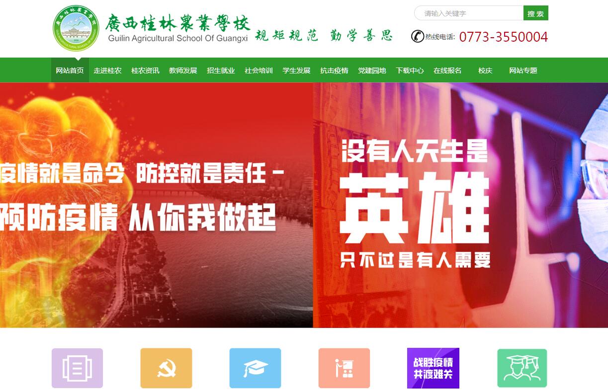 廣西桂林農(nóng)業(yè)學(xué)校始建于1958年2月,直屬于自治區(qū)農(nóng)業(yè)廳,為自治區(qū)重點(diǎn)和自治區(qū)示范特色中等職業(yè)學(xué)校,先后獲自治區(qū)文明單位、自治區(qū)教學(xué)水平評估優(yōu)秀學(xué)校、自治區(qū)衛(wèi)生優(yōu)秀學(xué)校、廣西森林校園、自治區(qū)和諧學(xué)校等20項(xiàng)榮譽(yù)稱號。學(xué)校位于桂林市雁山區(qū)大學(xué)城,占地面積413.9畝,在校生3358人。學(xué)校以“助推產(chǎn)業(yè)結(jié)構(gòu)升級、服務(wù)行業(yè)技術(shù)進(jìn)步、培養(yǎng)技能型人才、服務(wù)終身學(xué)習(xí)”為辦學(xué)目標(biāo),秉承“團(tuán)結(jié)協(xié)作、鍥而不舍”的大雁精神,遵循“規(guī)矩規(guī)范 勤學(xué)善思”的校訓(xùn),構(gòu)筑“樂業(yè)、敬業(yè);樹區(qū)內(nèi)特色職教示范,創(chuàng)國家一流職教品牌”的學(xué)校愿景。學(xué)校以內(nèi)涵建設(shè)為主線,以優(yōu)質(zhì)高效為目標(biāo),以服務(wù)為宗旨,以就業(yè)為導(dǎo)向,以師生發(fā)展為根本,堅(jiān)持“以農(nóng)為本、多元發(fā)展”的專業(yè)建設(shè)思路,成功由一所純農(nóng)類的普通中專學(xué)校轉(zhuǎn)型為一所綜合性的學(xué)生成才,家長放心,社會(huì)滿意的自治區(qū)重點(diǎn)和示范特色學(xué)校?!罢\信民主、合作感恩、追求卓越”蔚然成風(fēng)。學(xué)?,F(xiàn)開設(shè)有現(xiàn)代農(nóng)藝、現(xiàn)代服務(wù)、機(jī)電與信息技術(shù)三個(gè)專業(yè)群,果蔬花卉生產(chǎn)技術(shù)、園林技術(shù)、農(nóng)業(yè)機(jī)械使用與維護(hù)、觀光農(nóng)業(yè)經(jīng)營、畜牧獸醫(yī)、農(nóng)村經(jīng)濟(jì)綜合管理、旅游服務(wù)與管理、高鐵乘務(wù)、汽車運(yùn)用與維修、計(jì)算機(jī)應(yīng)用和電子電器應(yīng)用與維修共11個(gè)專業(yè)。學(xué)校采取“2+1”(2年在校學(xué)習(xí)、1年到企業(yè)頂崗實(shí)習(xí))三年制普通中專、“2+3”或“3+2”學(xué)制直升高職和憑學(xué)校推薦參加對口升本科考試三種培養(yǎng)模式,真正實(shí)現(xiàn)了“升學(xué)有通道,就業(yè)有能力”。學(xué)校采取校企合作、工學(xué)交替、企業(yè)委托培養(yǎng)訂單辦學(xué)模式和“理實(shí)一體化”教學(xué)模式培養(yǎng)一專多能、一書多證的高素質(zhì)技能型人才。學(xué)校擁有孫中山先生命名的“嶺南第一名園”——雁山園,有教學(xué)樓和實(shí)驗(yàn)實(shí)訓(xùn)樓6棟,公寓式學(xué)生宿舍樓5棟,圖書綜合樓1棟,學(xué)生食堂1棟,校舍建筑面積75009平方米。有300米塑膠跑道、田徑運(yùn)動(dòng)場、足球場和體育館各1個(gè),校內(nèi)實(shí)訓(xùn)實(shí)驗(yàn)室79個(gè),擁有中央和自治區(qū)財(cái)政支持建設(shè)的校內(nèi)實(shí)訓(xùn)基地5個(gè),擁有裝機(jī)容量為500臺電腦的計(jì)算機(jī)房,設(shè)備總價(jià)值達(dá)2575萬元。學(xué)校還與區(qū)內(nèi)外知名企業(yè)合作建立校外實(shí)訓(xùn)基地20個(gè)。學(xué)校是全國農(nóng)業(yè)職業(yè)技術(shù)教育培訓(xùn)示范基地、農(nóng)業(yè)部農(nóng)村合作社人員培訓(xùn)基地、廣西現(xiàn)代農(nóng)業(yè)技術(shù)培訓(xùn)基地、自治區(qū)水庫移民培訓(xùn)基地、廣西貧困村勞動(dòng)力轉(zhuǎn)移就業(yè)培訓(xùn)基地,廣西新型職業(yè)農(nóng)民培育基地。學(xué)校充分整合學(xué)校與社會(huì)優(yōu)質(zhì)資源大力開展新型職業(yè)農(nóng)民培育、水庫移民創(chuàng)業(yè)就業(yè)培訓(xùn)、基層農(nóng)技推廣人員培訓(xùn)、職業(yè)技能鑒定考證培訓(xùn)、行業(yè)從業(yè)人員崗位培訓(xùn)等,充分利用現(xiàn)代農(nóng)業(yè)示范展示園、涉農(nóng)企業(yè)、農(nóng)業(yè)專業(yè)合作社、家庭農(nóng)場等生產(chǎn)基地開展田間地頭教學(xué),真正把課堂辦到農(nóng)村、把技術(shù)送到家里,年均培訓(xùn)達(dá)3000人次,為助推產(chǎn)業(yè)結(jié)構(gòu)升級、服務(wù)行業(yè)技術(shù)進(jìn)步、服務(wù)終身學(xué)習(xí)和服務(wù)精準(zhǔn)扶貧發(fā)揮了重要作用,為推進(jìn)“三農(nóng)”建設(shè)做出了積極貢獻(xiàn)。學(xué)?,F(xiàn)有教職工142名,其中專任教師128名。中高級職稱69人,“雙師型”教師占專業(yè)課教師總數(shù)的85%。2008年以來,教師編寫公開出版教材35部,編寫特色校本教材12部,公開發(fā)表論文262篇,獲獎(jiǎng)?wù)撐?3篇,承擔(dān)各級課題和項(xiàng)目共48項(xiàng)。在中職學(xué)校職業(yè)技能大賽中取得優(yōu)異成績,獲自治區(qū)級及以上獎(jiǎng)勵(lì)一等獎(jiǎng)5人次,二等獎(jiǎng)19人次,三等獎(jiǎng)68人次。近五年來,共516名學(xué)生通過對口升學(xué)進(jìn)入高校深造,畢業(yè)生就業(yè)率均達(dá)98%以上,為服務(wù)區(qū)域經(jīng)濟(jì)發(fā)展做出了積極貢獻(xiàn)。