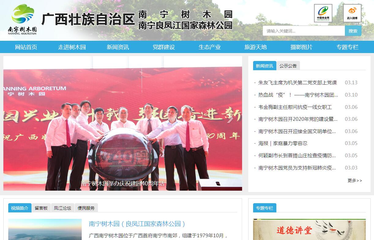 南寧樹木園位于享有“中國綠城”美譽(yù)的廣西壯族自治區(qū)首府南寧市,掛南寧良鳳江國家森林公園牌子,實(shí)行“一套人馬、兩塊牌子”管理體制,是隸屬于廣西壯族自治區(qū)林業(yè)廳直屬管理的正處級(jí)事業(yè)單位、自治區(qū)直屬大一型國有林場。南寧樹木園組建于1979年10月,由良鳳江植物園、南寧示范林場、七坡林場連山分場合并組建。1992年9月9日,原國家林業(yè)部批準(zhǔn)成立南寧良鳳江國家森林公園;1998年5月26日,自治區(qū)機(jī)構(gòu)編制委員會(huì)批準(zhǔn)南寧樹木園更名為南寧良鳳江國家森林公園;2011年6月21日,自治區(qū)機(jī)構(gòu)編制委員會(huì)批準(zhǔn)恢復(fù)南寧樹木園名稱并作為第一名稱使用,南寧良鳳江國家森林公園作為第二名稱使用。南寧樹木園內(nèi)設(shè)機(jī)關(guān)科室辦公室、計(jì)財(cái)科等11個(gè)科室,后勤服務(wù)中心等二層管理服務(wù)機(jī)構(gòu)5個(gè),新塘橋等營林管理區(qū)6個(gè)以及一些園屬獨(dú)資、控股和參股公司。截至2016年底,擁有職工和離退休人員共849人,其中在職職工450多人。截至2016年底,南寧樹木園林地經(jīng)營總面積44.02萬畝,其中園內(nèi)國有林地面積5.7萬多畝,園外租地造林面積39.03萬畝;活立木蓄積量173.04萬立方米,其中園內(nèi)19.04萬立方米,園外154萬立方米;園內(nèi)國有的5.7萬多畝林地中,生態(tài)公益林面積為2.73萬畝。南寧樹木園主要以森林資源培育為主,開展森林旅游、種苗綠化、土地開發(fā)、林下種養(yǎng)等多元產(chǎn)業(yè)發(fā)展。2016年,實(shí)現(xiàn)經(jīng)營收入1.8億元,實(shí)現(xiàn)營業(yè)利潤2100多萬元,資產(chǎn)總額達(dá)到20.3億元。南寧樹木園先后榮獲全國綠化模范單位、全國科普教育基地、國家4A級(jí)旅游景區(qū)、全國十佳林場、全國農(nóng)林水利系統(tǒng)勞動(dòng)關(guān)系和諧企業(yè);廣西青少年科技教育基地、自治區(qū)文明單位、區(qū)直機(jī)關(guān)文明單位、廣西五一巾幗標(biāo)兵崗、廣西巾幗建功先進(jìn)集體等多項(xiàng)榮譽(yù)稱號(hào)。