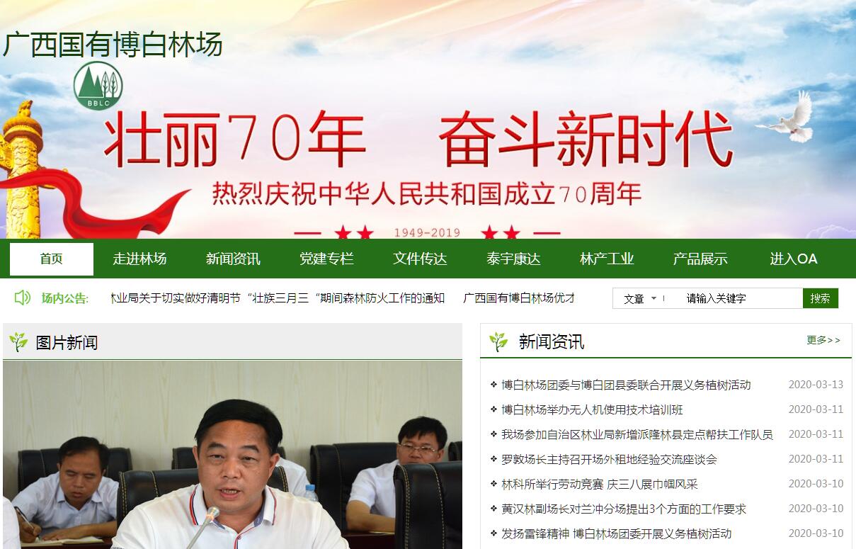 廣西國有博白林場創(chuàng)建于1962年,是自治區(qū)林業(yè)局直屬國有大型林場,正處級事業(yè)單位,廣西現(xiàn)代林業(yè)產(chǎn)業(yè)龍頭企業(yè),實行事業(yè)單位企業(yè)化管理,主營速豐林、人造板、苗木等產(chǎn)業(yè),是國家木材戰(zhàn)略儲備重要基地和速生豐產(chǎn)林培育基地。場部位于廣西玉林市博白縣,內(nèi)設11個職能科室、下轄9個營林分場、以及年產(chǎn)25萬m3中(高)密度纖維板的廣西浩林人造板有限公司、年產(chǎn)8萬m3膠合板的廣西萬林林產(chǎn)業(yè)責任有限公司和一個年產(chǎn)3000萬株以上各類苗木的大型林木良種繁育基地,合作經(jīng)營廣西桉盛豐肥業(yè)有限公司和廣西瀚林木業(yè)有限責任公司。林場現(xiàn)有員工2300人。林場經(jīng)營總面積68.3萬畝,活立木蓄積量181萬m3,森林覆蓋率82.8%。2017年,博白林場資產(chǎn)總額27億元,綜合實力排名廣西林業(yè)前列。博白林場始終堅持“以林為本、多種經(jīng)營、綜合利用”的發(fā)展思路,深入推進一、二、三產(chǎn)業(yè)協(xié)調(diào)發(fā)展,經(jīng)濟實力不斷增強?!笆濉逼陂g,林場將按照規(guī)劃藍圖和發(fā)展方向,進一步解放思想,趕超跨越,以更加昂揚的斗志和更加務實的作風,開拓創(chuàng)新,銳意進取,努力實現(xiàn)科學發(fā)展、跨越發(fā)展、和諧發(fā)展,構建現(xiàn)代化新林場。